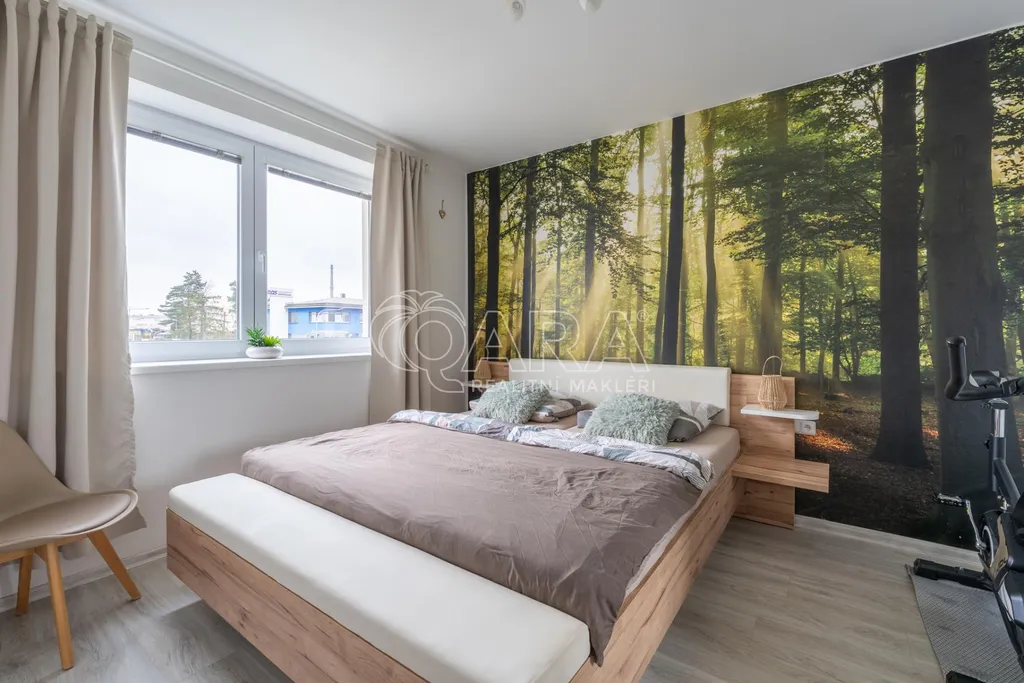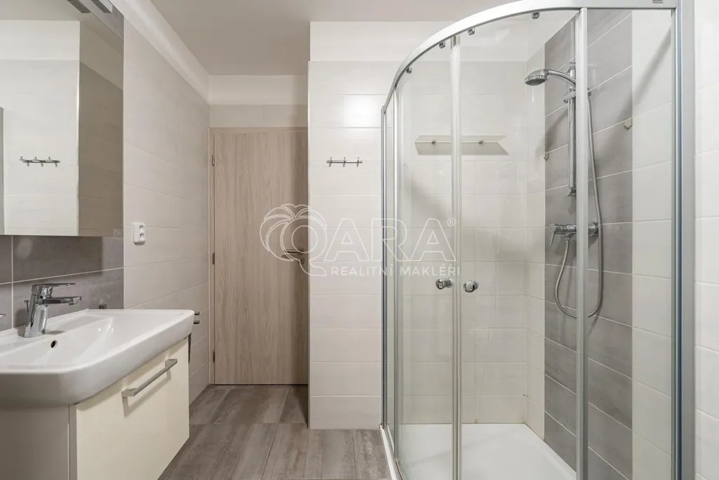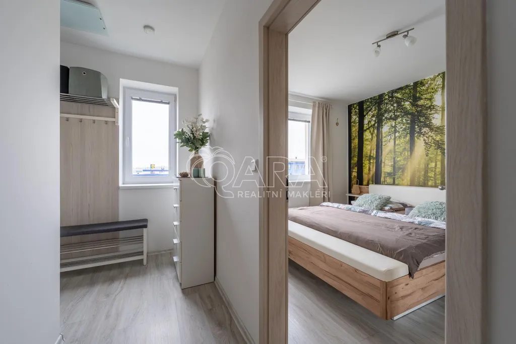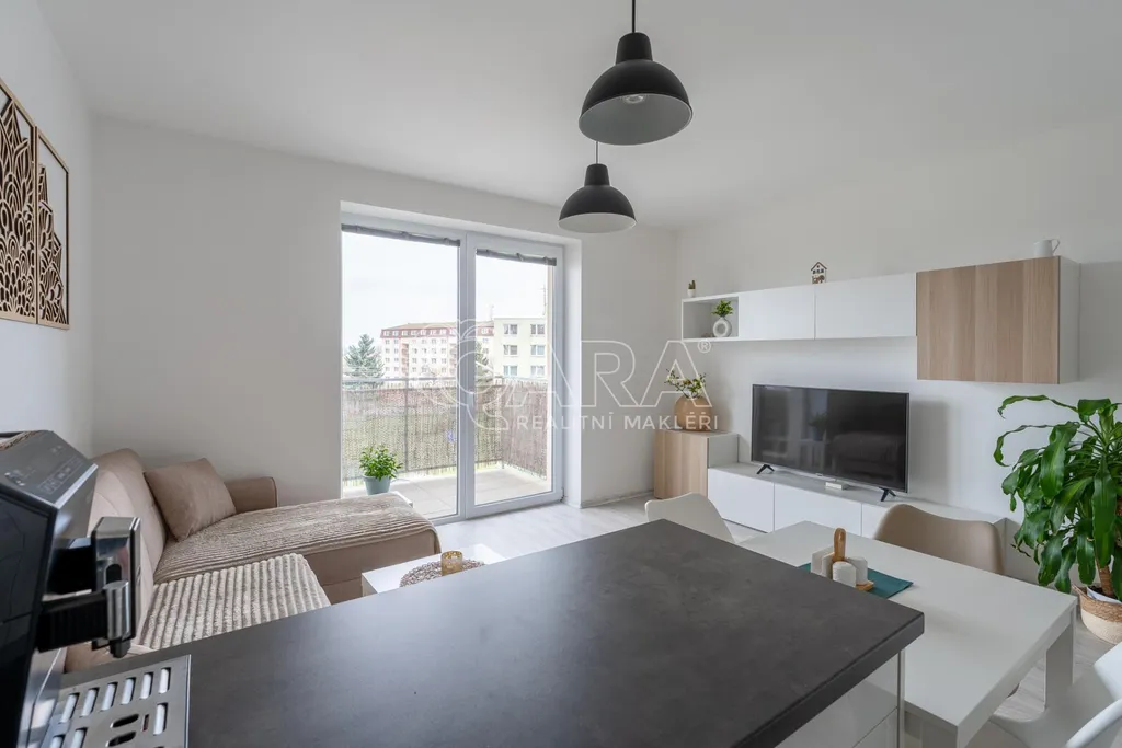 Byt o celkové ploše 51,4 metrů čtverečních se nachází ve 2. nadzemním podlaží (výtah je samozřejmostí) novostavby z roku 2019. Dispozice je prakticky řešena, z jsou přístupné všechny místnosti. Dominantou bytu je obývací pokoj s kuchyní a jídelním koutem, je vybavený moderní kuchyňskou linkou do tvaru L se všemi spotřebiči (vestavná lednice s mrazákem, trouba, mikrovlnná trouba, indukční varná deska, digestoř a myčka). Součástí je také sedací souprava, obývací stěna (televize není součástí nájmu) a jídelní stůl se třemi židlemi. Z obývací části je vstup na prostorný balkon, ideální pro ranní kávu, večerní posezení nebo menší zeleň v květináčích. Ložnice nabízí dostatek úložného prostoru díky šatní skříni a je vybavena dvoulůžkovou postelí. Koupelna je zařízena sprchovým koutem, umyvadlem, WC, ale i pračkou v kombinaci se sušičkou. K bytu náleží také samostatný zděný sklep. Parkování je možné v okolí domu.