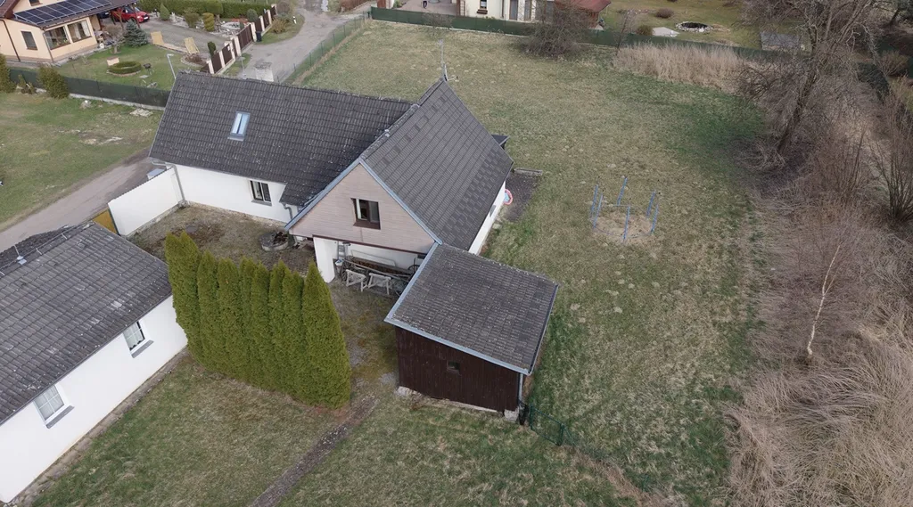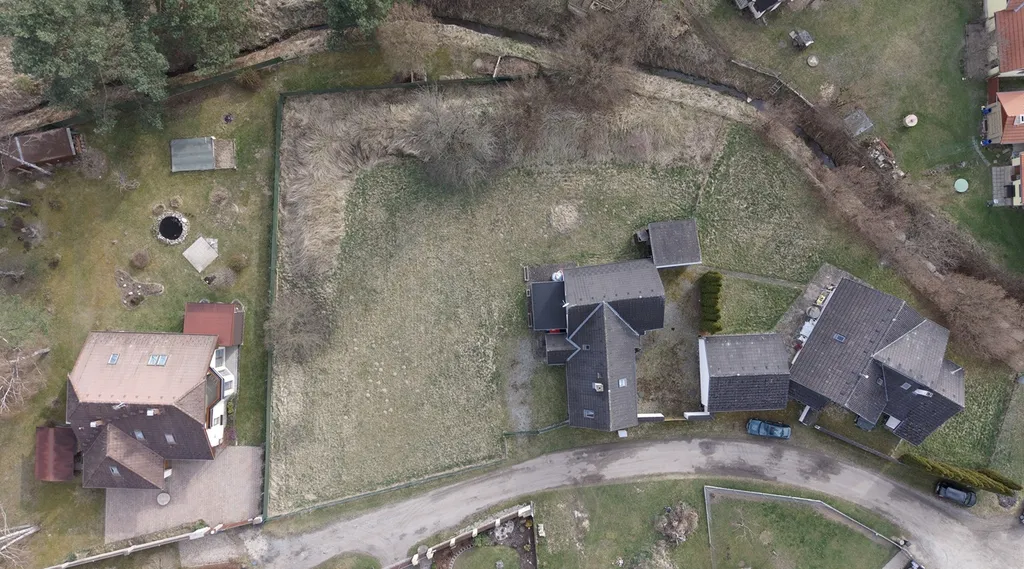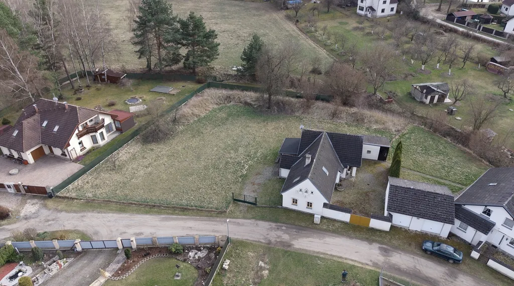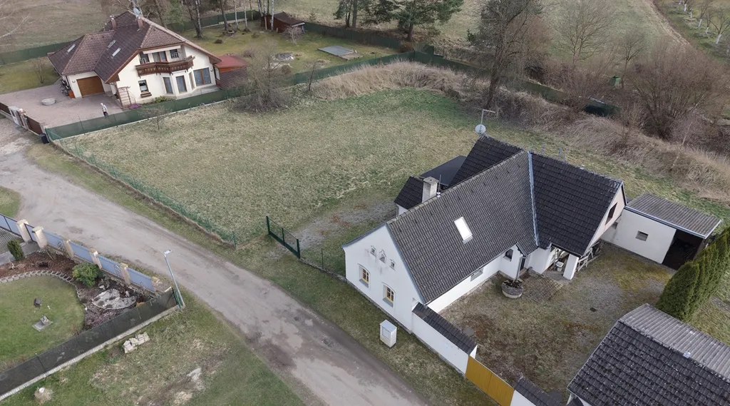 K nemovitosti náleží oplocený pozemek o výměře 1 600 m² (1056m2 a 544m2) se vstupní bránou, přičemž je vhodné doplnit samostatnou vstupní branku. Součástí nabídky je samostatný pozemek o velikosti 1 056 m², který je veden jako stavební parcela. Je zde možnost koupě domu samostatně bez tohoto pozemku, vše je otázkou individuální dohody.