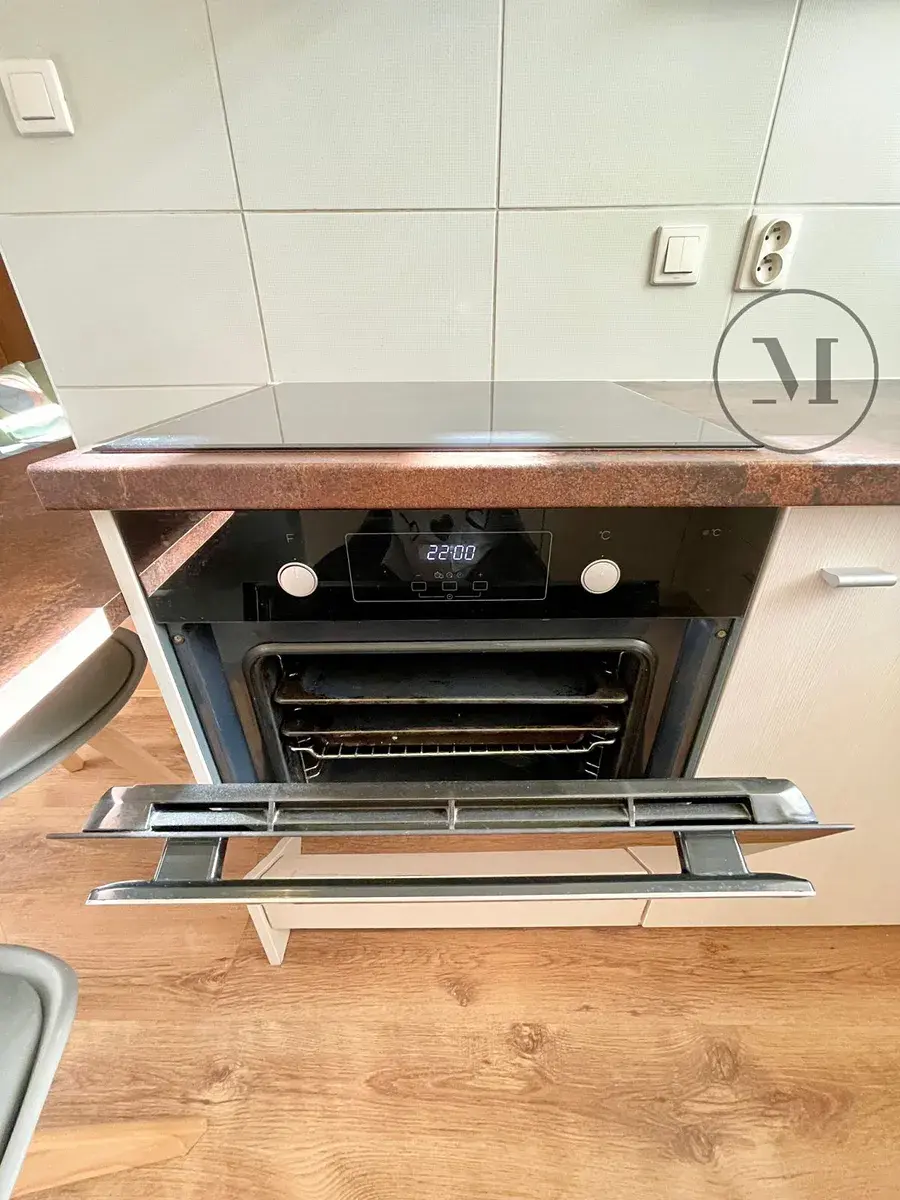 Vybavení: Kuchyňská linka s lednicí a troubou, vestavěné skříně, sedačka, konferenční stolek, televizor