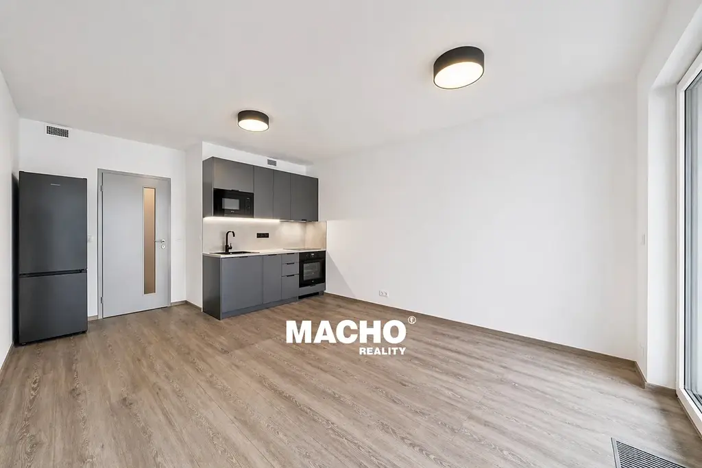 Hlavní obytný prostor s kuchyňským koutem má 21,1 m², působí vzdušně a světlým dojmem a je vybaven moderní kuchyňskou linkou se spotřebiči. Po domluvě je možné byt dovybavit pračkou.