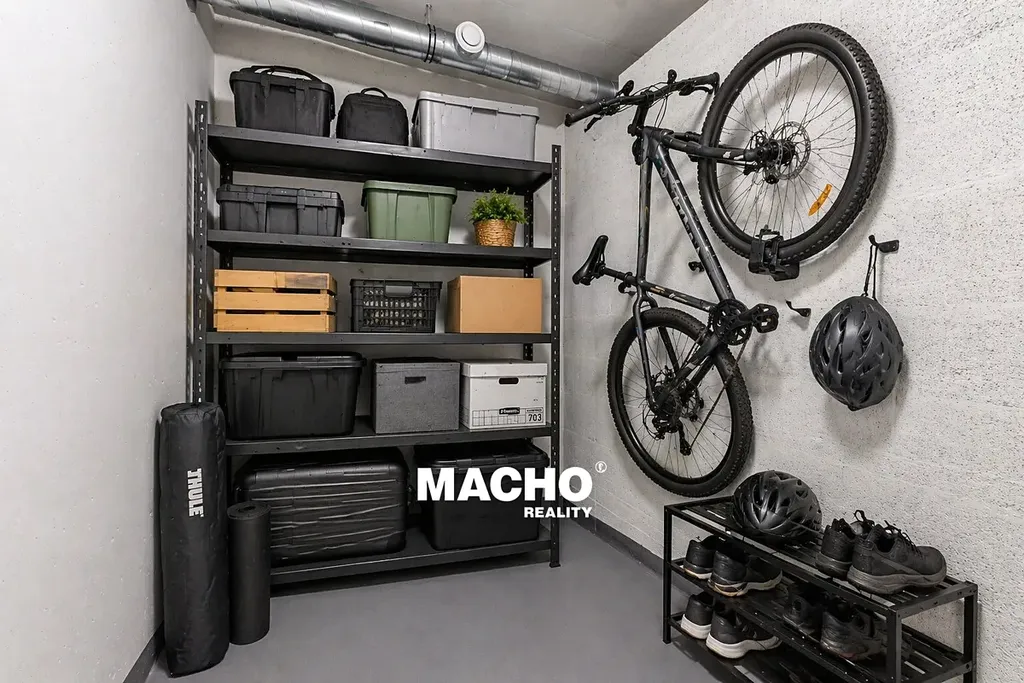 Součástí pronájmu je také prostorný sklep o velikosti 4,26 m², umístěný v podzemním podlaží (-2), ideální pro kola, sezónní věci či sportovní vybavení. Obyvatelům domu je navíc k dispozici také společná kolárna / kočárkárna, která zvyšuje komfort každodenního bydlení.