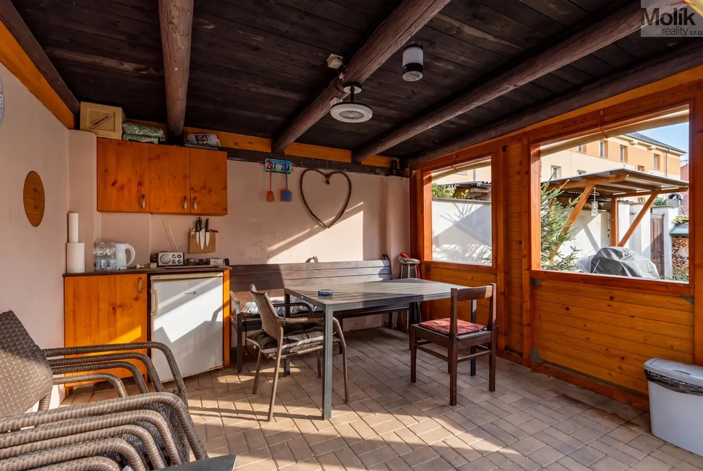 Dům je z větší části podsklepen (cca ze 2/3), což nabízí dostatek úložných prostor či možnost dalšího využití. Součástí nemovitosti je udržovaná zahrada o výměře 190 m2, která poskytuje příjemné zázemí pro odpočinek i rodinné aktivity. Nachází se zde pergola k posezení a venkovní bazén, ideální pro relaxaci v letních měsících. Další výhodou je praktické zázemí domu nachází se zde dílna o výměře 13 m² a samostatná místnost pro ukládání kol, což ocení zejména rodiny či zájemci s potřebou dostatečných úložných prostor. Střešní krytina je řešena asfaltovým (bitumenovým) šindelem.
