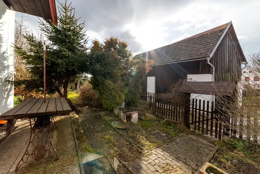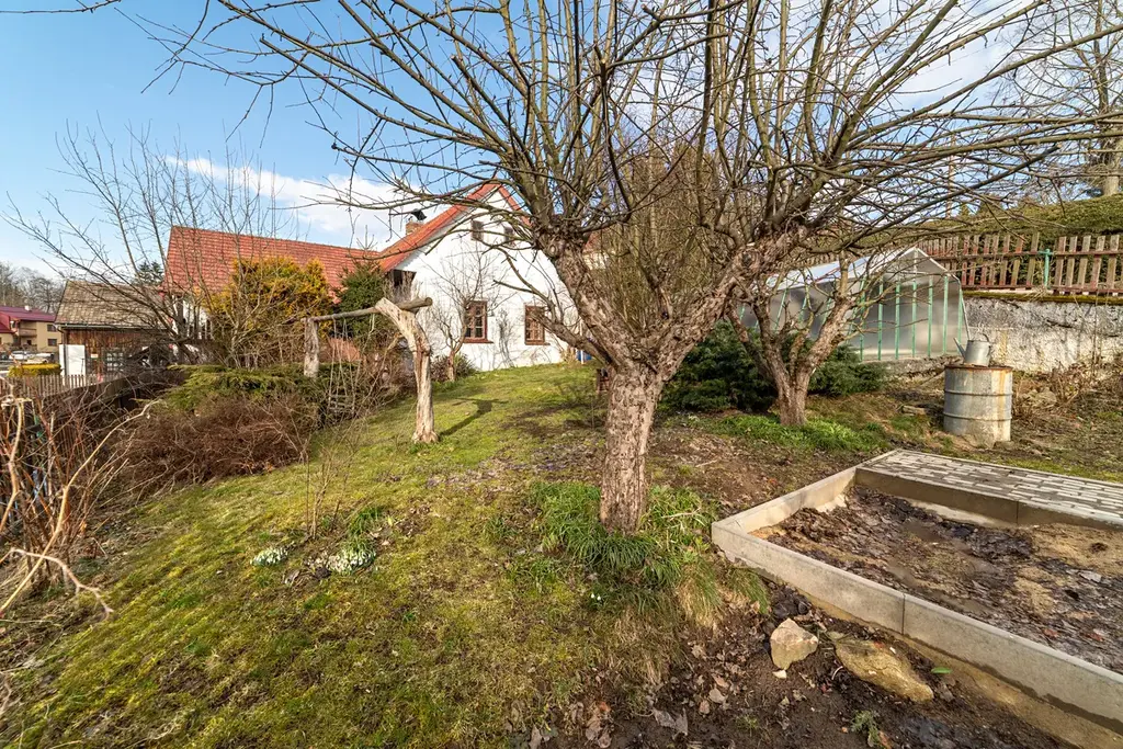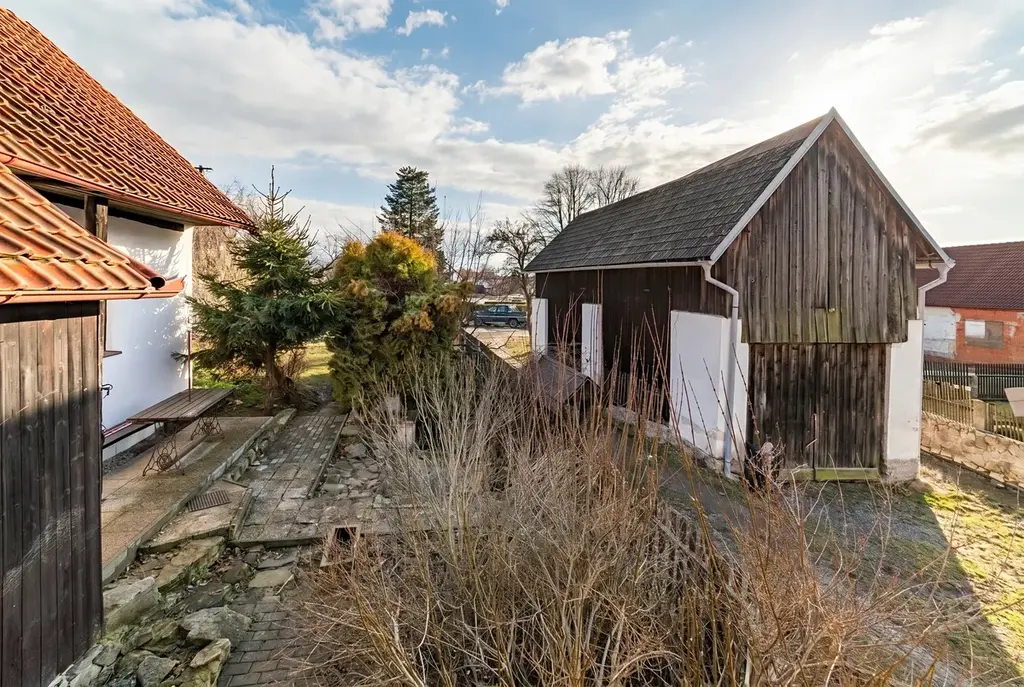Stavba dispozice 4+1 nabízí podlahovou plochu 125 m2 s možností využití půdního prostoru. Součástí domu je malý sklípek s možností přístupu z budovy nebo ze zahrady. Na pozemku o rozloze 689 m2 se dále nachází venkovní posezení, dětské pískoviště a improvizovaně zastřešený bazén. Součástí prodeje je také 60 m2 stodola stojící pozemku o rozloze 143 m2, která lze využít jako dvougaráž nebo jako netradiční prostor.