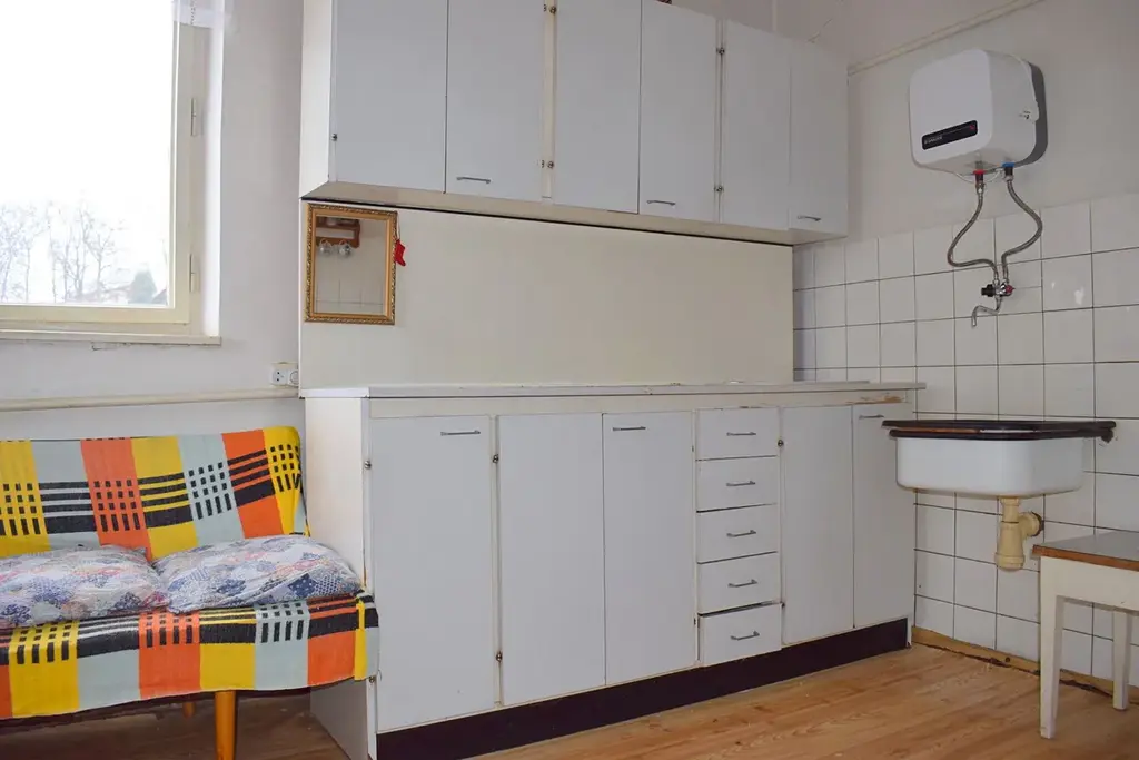 V lukrativní a klidné části města Volyně nabízíme samostatný, podsklepený rodinný dům se zahradou. Parcela o výměře 390 m2 zastavěná plocha a nádvoří se stavbou rodinný dům o zastavěné ploše 134 m2, zahrada o výměře 545 m2, jejíž součástí je stavba bez čísla popisného/evidenčního o výměře 17 m2 jiná stavba. Vchod do domu přes verandu, předsíně a chodbu. Dům je podsklepený, v suterénu sklepy, garáž, domácí dílnička, plynový kotel. V přízemí obytná kuchyně, je spojená s obývacím pokojem a jednou ložnicí. Obývací pokoj je přístupný mimo vstupu z kuchyně ještě samostatným vstupem z chodby. Do ložnice se vchází z chodby. Dále je zde samostatné WC s větracím okénkem, prostorná koupelna s oknem a spíž. Po schodišti, v patře, dva pokoje a z každé jejich jedné strany podél nich půdičky úložný půdní prostor, který lze využít na šatny. Dům je napojen na veřejný vodovod i kanalizaci. Je vytápěn plynovým kotlem, možnost etážového topení, v patře akumulační kamna. Ohřev vody elektrickým bojlerem, v kuchyni průtokový ohřívač. Objekt je celý oplocený. Na zahradě vzrostlé ovocné stromy, stavba sloužící na uskladnění zahradnického nářadí a ovoce. Volyně má veškerou občanskou vybavenost. PENB nebyl dodán proto uvádíme třídu G. Doporučujeme prohlídku.