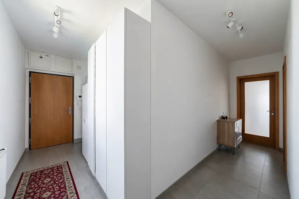 Interiér je řešen s důrazem na komfort a praktičnost. Venkovní elektrické žaluzie zajišťují dostatek soukromí i ochranu před sluncem. Byt je vybaven kvalitními materiály a díky kompletnímu zařízení je možné se ihned nastěhovat bez nutnosti dalších investic.
