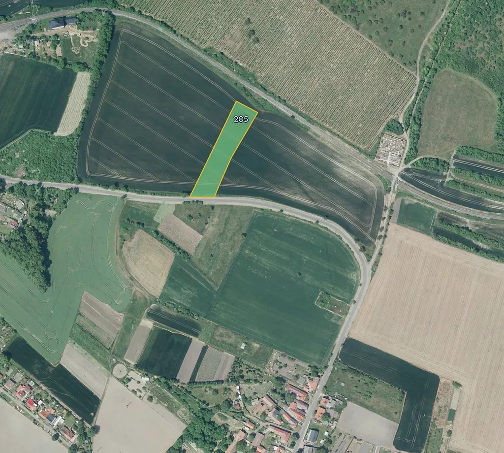 Jedná se o parcely č. 205 a 477. Celková výměra těchto pozemků činí 8 367 m², k prodeji je ideální vlastnictví odpovídající výměře 4 184 m², tvořené výhradně ornou půdou.