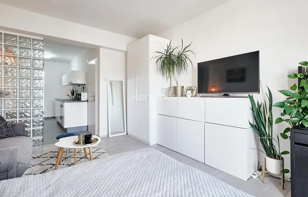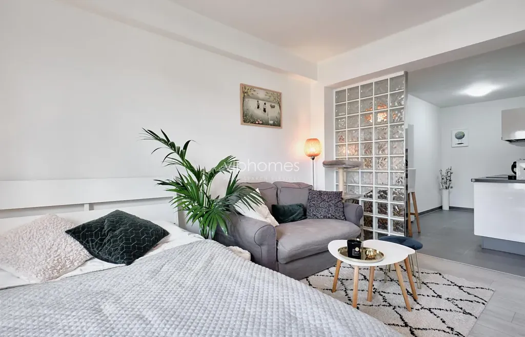 Nově rekonstruovaný byt má světlý obývací pokoj s plně vybaveným kuchyňským koutem a ložnicovou částí, koupelnu s vanou a toaletou, a vstupní chodbu. Celková obytná plocha bytu je 34m2 a 12 m2 tvoří příjemná terasa. Tento byt je ideálním řešení pro jednu osobu případně pár.