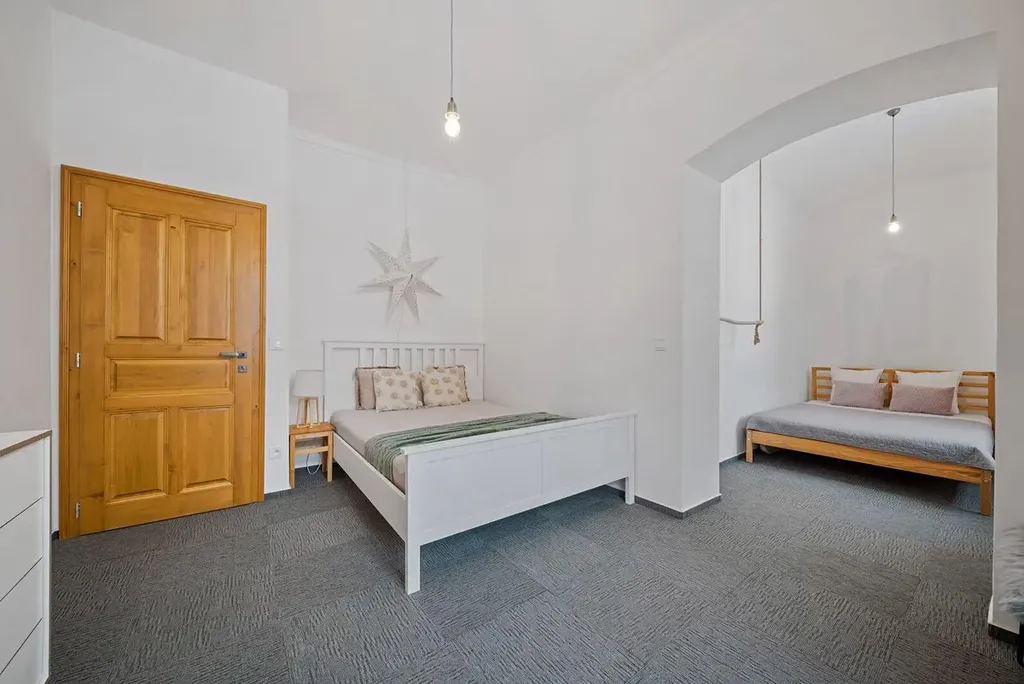 Apartmán je součástí citlivě zrekonstruované historické budovy bývalé obecné školy z roku 1876, která dnes slouží jako stylové ubytovací zařízení. Rekonstrukce zachovala původní charakter stavby a zároveň přinesla moderní komfort odpovídající současným nárokům.