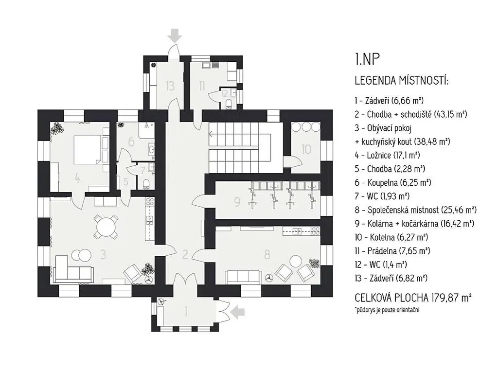 Majitel apartmánu má zároveň k dispozici společné prostory domu, které výrazně zvyšují komfort i atraktivitu pro hosty: