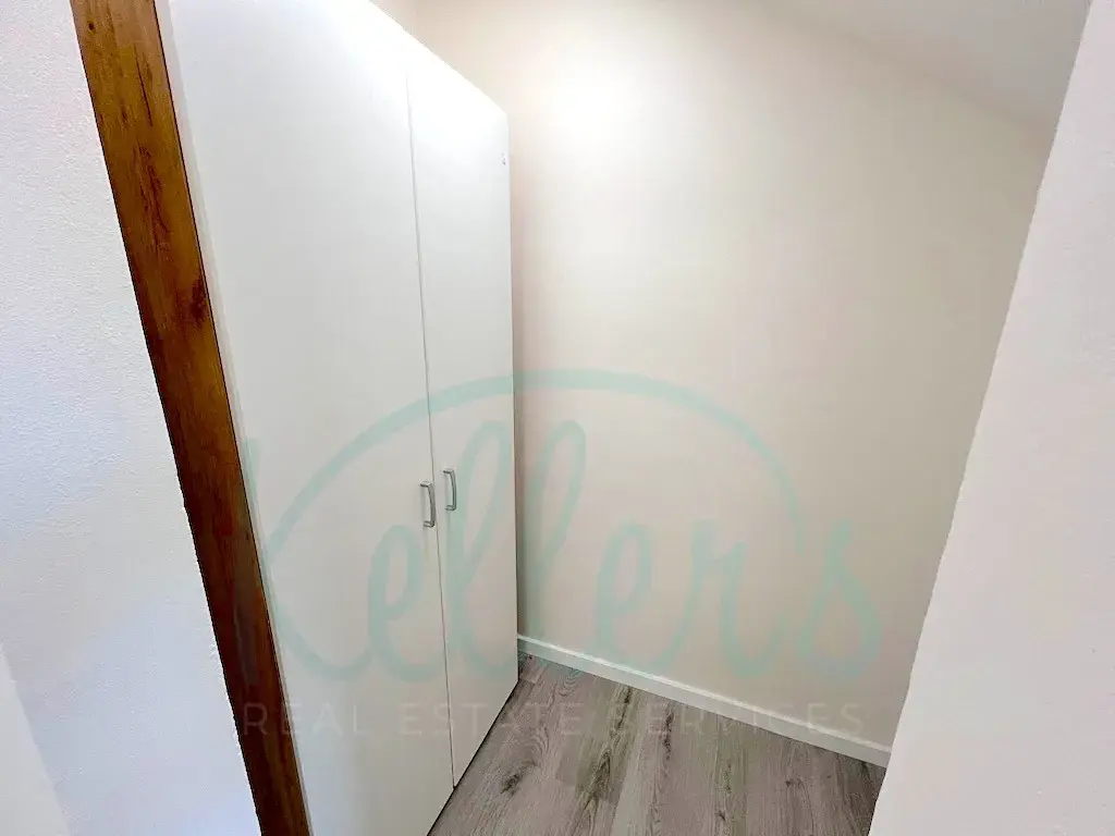 Součástí bytu je kuchyňská linka vybavená troubou, indukční varnou deskou, digestoří a volně stojící lednicí s mrazákem, v menší šatně naleznete skříň. V koupelně je sprchový kout, závěsné WC, umyvadlo se zrcadlem a k dispozici je pračka.