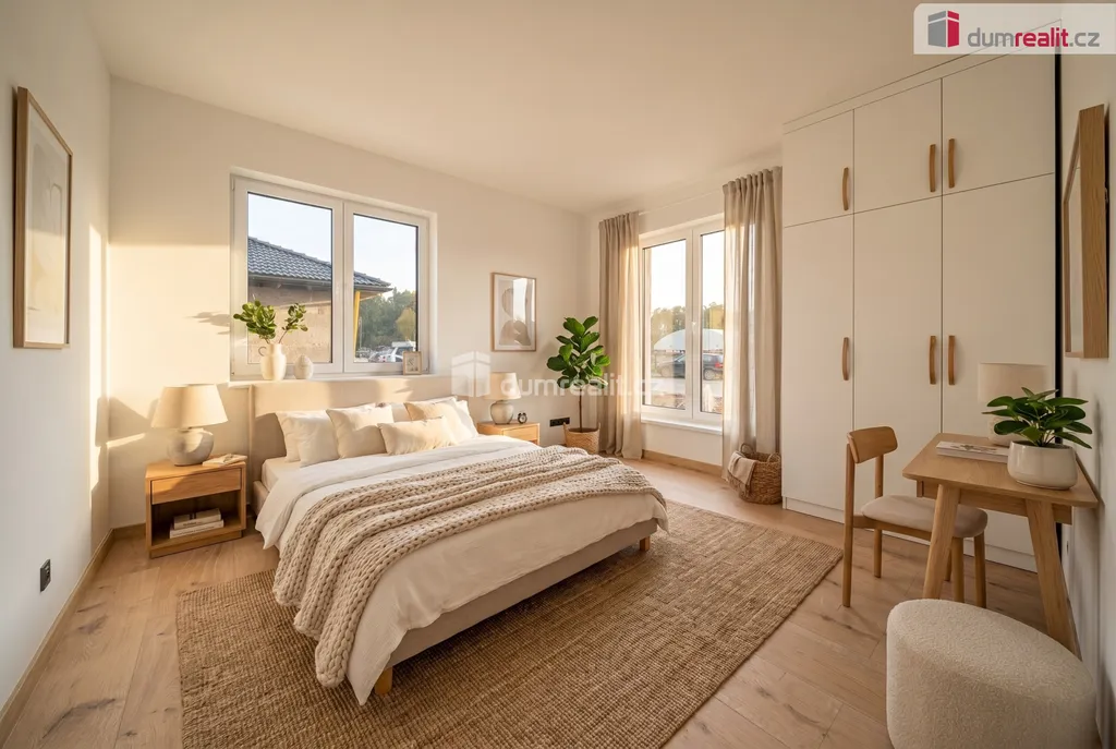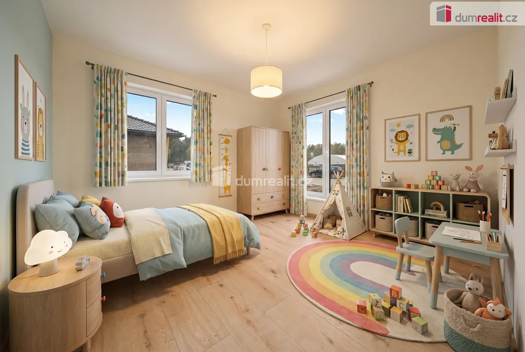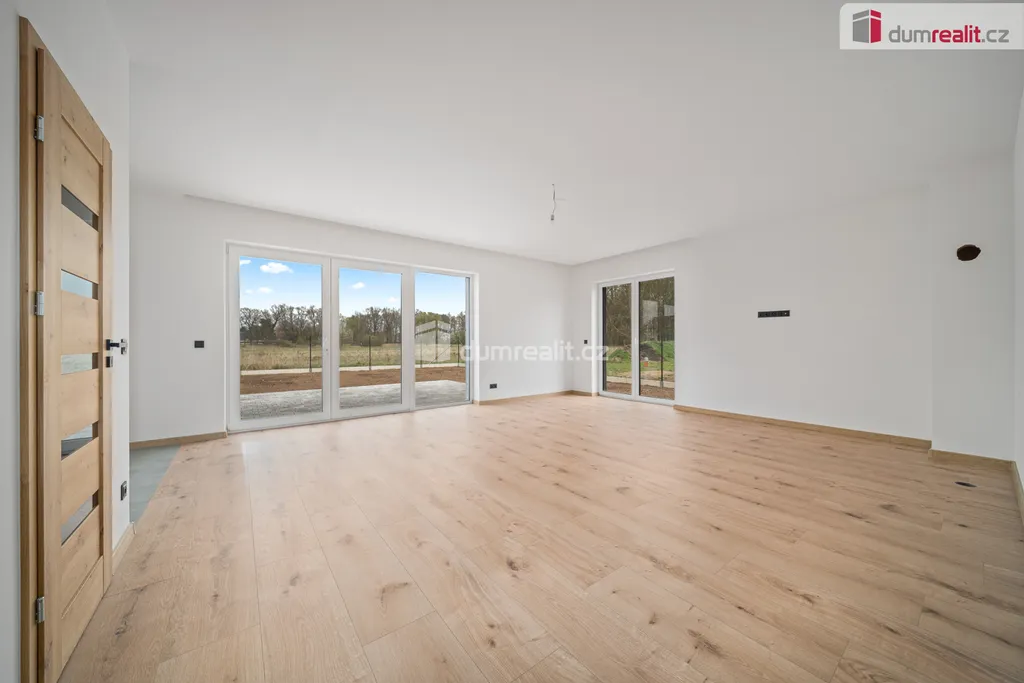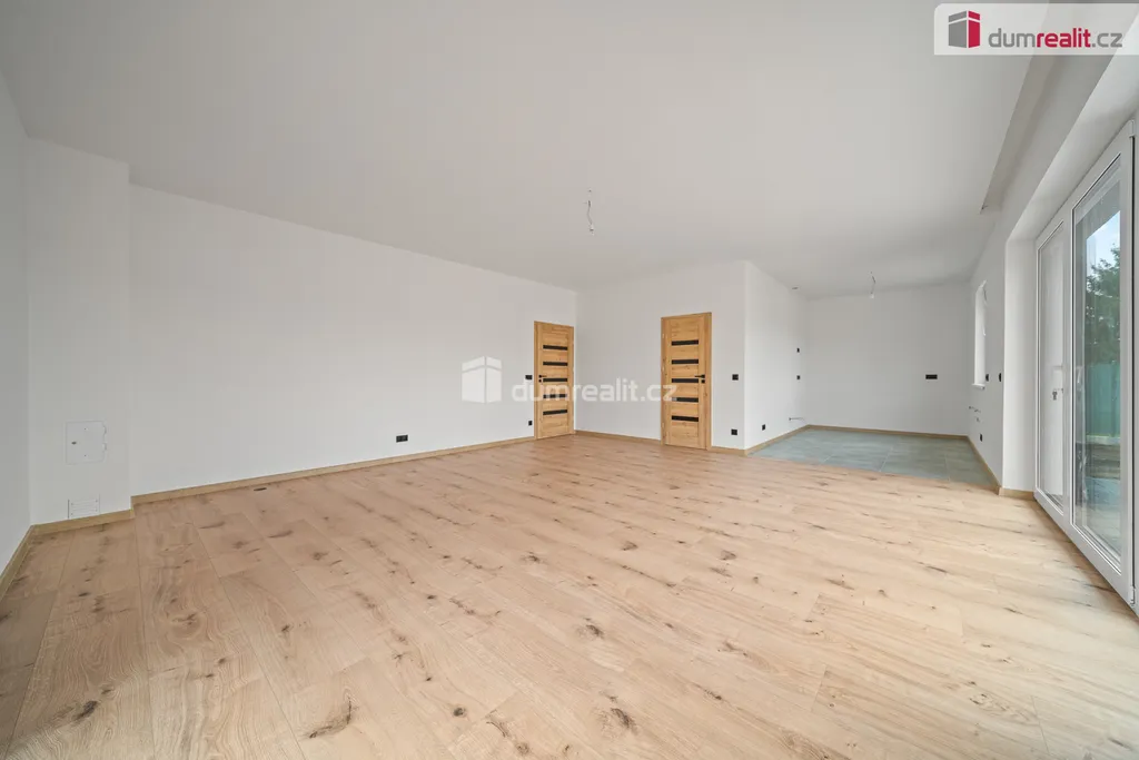 Dispozičně je dům řešen jako prostorný bungalov s dominantním obytným prostorem a kuchyňským koutem, který tvoří hlavní centrum domu. Dále jsou k dispozici samostatné pokoje, koupelna a technické zázemí. Nemovitost je připravena k dokončení interiéru dle individuálních představ nového majitele, což umožňuje přizpůsobení finální podoby bydlení přesně podle vlastního vkusu a potřeb.