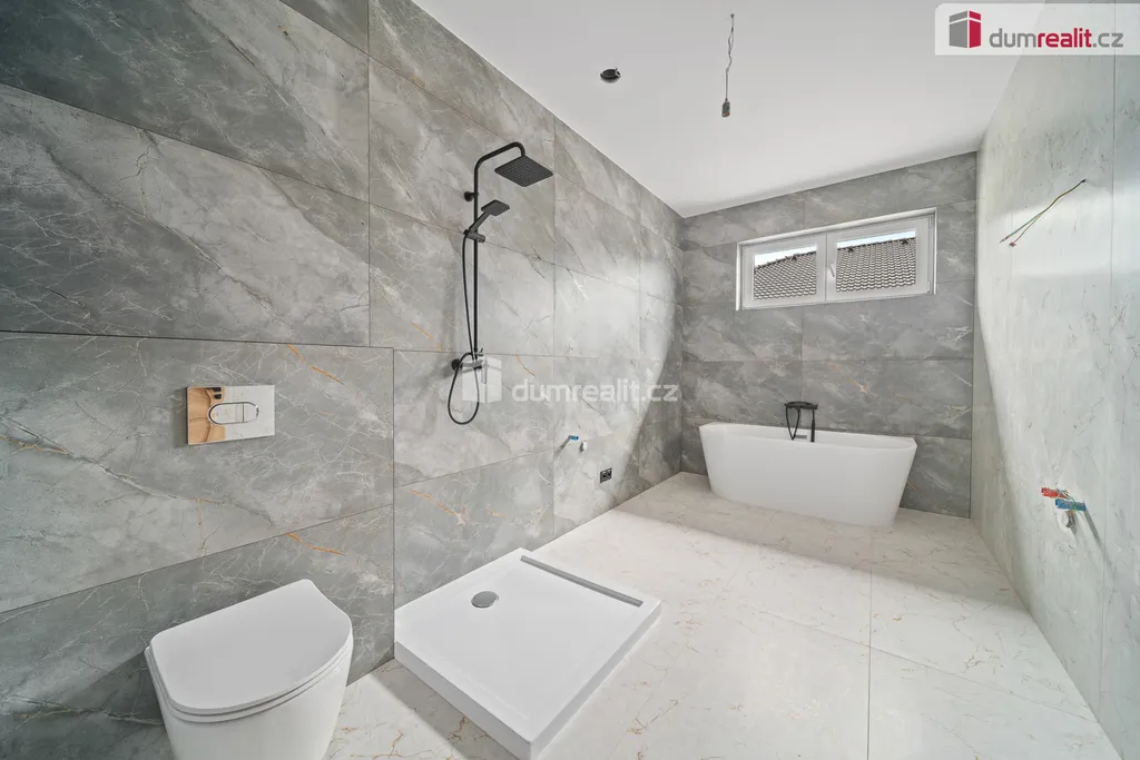 Dům je postaven jako zděná novostavba s důrazem na kvalitní technické řešení. V celém domě je instalováno podlahové vytápění napojené na tepelné čerpadlo, které zároveň zajišťuje ohřev teplé vody. Okna jsou plastová s izolačními trojskly. Nemovitost je napojena na veškeré inženýrské sítě – vodu, kanalizaci a elektřinu. Pozemek je kompletně oplocený a nabízí parkování přímo na vlastním pozemku za pojezdovou bránou.