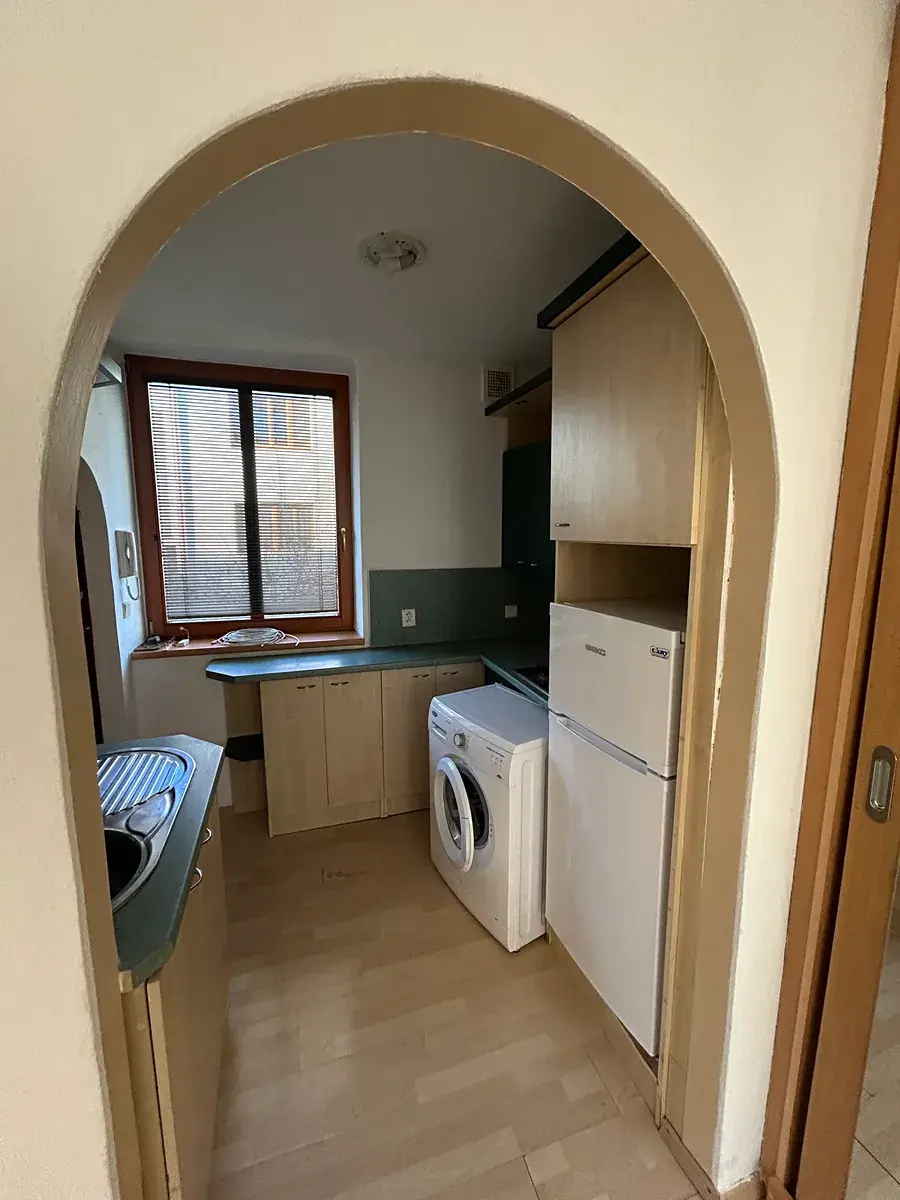Pronájem bytu 1+1 o celkové ploše 31 m2 ve 2. NP cihlového bytového domu. Byt je nezařízený – pouze KL včetně spotřebičů a prostorná šatní skříň. Kauce 1x měsíční nájem. zálohy na el., plyn a vodu 1 700,-Kč. K dispozici prostorný sklep. Volné od 1.6. 2026.