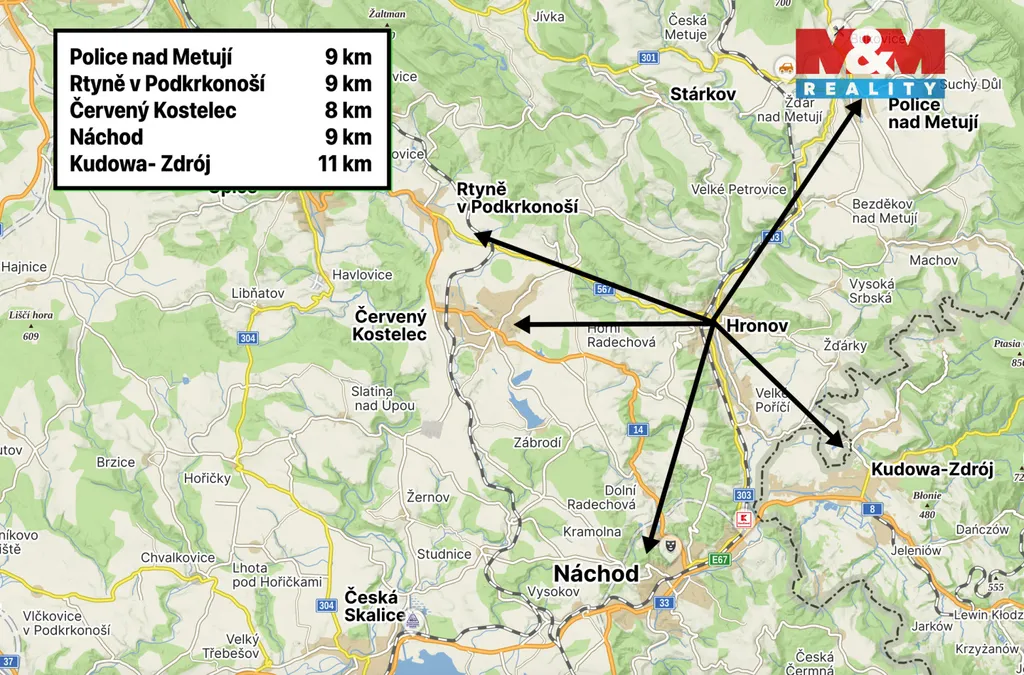 Lokalita v samotném centru Hronova zajišťuje výbornou dostupnost veškeré občanské vybavenosti.