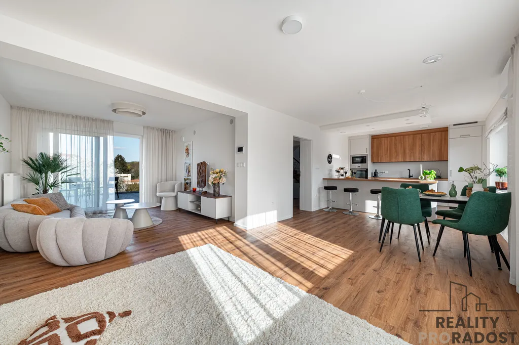 Nabízíme k prodeji výjimečnou novostavbu v prestižní lokalitě Říčany, dlouhodobě hodnocené jako jedno z nejlepších míst pro život v České republice. Nemovitost se nachází v klidném prostředí plném zeleně, s důrazem na soukromí a komfort, v docházkové vzdálenosti od oblíbeného areálu Koupaliště Jureček.
