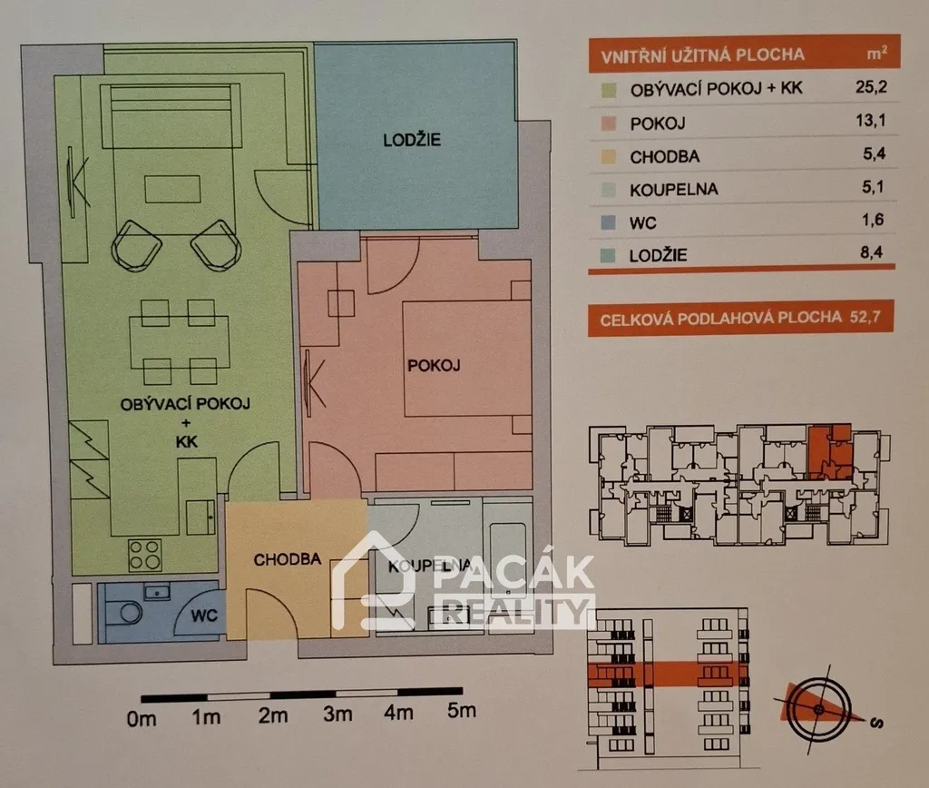 Ve výhradním zastoupení majitelky nabízíme k prodeji moderní byt 2 + kk o výměře 52,7 m2 v osobním vlastnictví s lodžií, dvěma skladovacími prostorami, v klidné lokalitě města Olomouce na ulici A. Rašína. Nespornou výhodou tohoto bytu jsou nízké provozní náklady. Bytová jednotka je umístěna v 4. NP bytového domu s nízkým počtem bytových jednotek, který byl postaven před 10 lety. Velkou předností této lokality je dostatek zeleně a odpočinkových zón, výborná občanská vybavenost, dostupnost na MHD a bezproblémový výjezd na dálnici. Bytová jednotka je účelně řešena, dispozice bytu nabízí uživatelům prostorný obývací pokoj o ploše 25,2 m2 s kuchyňským koutem vybaveným kuchyňskou linkou se spotřebiči. Obývací pokoj díky své ploše umožnil rozdělení prostoru na část relaxační a prostor pro jídelnu. Další pokoj-ložnice o ploše 13,1 m2- je přístupný z chodby, stejně jako prostorná koupelna s WC a šatnu s možností umístění automatické pračky. Zázemí pro relaxaci nabízí uživatelům bytu čtvercová lodžie o ploše 8,4 m2,přístupná z obývacího pokoje i z ložnice. Nadstandardně k bytu přináleží i dvě komory o ploše 3,3 m2 a 2,6 m2, které jsou umístěny naproti vstupním dveřím ve stejném podlaží jako byt. Bytový dům v hodnocení energetické náročnosti budovy je zařazen do kategorie B, což se příznivě promítá do nákladů na bydlení. Jedinečným bonusem pro majitele bytu může být i garážové parkovací stání v suterénu bytového domu přímo u výtahu navíc za cenu 600.000Kč. Jedná se o zajímavou investiční příležitost pořídit si v Olomouci byt 2 +kk s prostornou lodžií a možností parkování na vlastním garážovým parkovacím stáním v suterénu domu. S financováním nákupu bytu vám poskytne informační servis náš finanční poradce. Doporučujeme prohlídku tohoto zajímavého bytu.