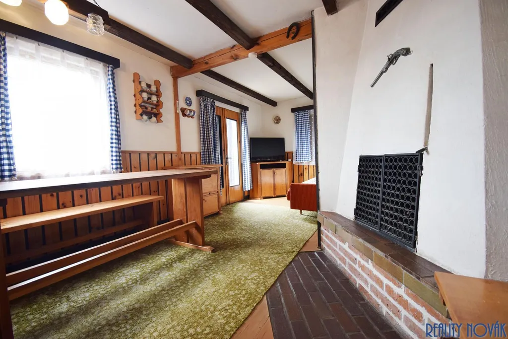 Nabízíme k prodeji velmi pěknou rekreační chatu umístěnou na kopci s výhledem do okolí, která se nachází v obci Stříbrná Skalice v okrese Praha-východ. Kromě hlavní chaty se v jihozápadním rohu pozemku nachází ještě druhá stavba, která má samostatné číslo evidenční. Hlavní chata s celkovou užitnou plochou 136 m² je postavena na vlastním pozemku o výměře 751 m², z toho zastavěná plocha chaty činí 79 m², další stavba má 22 m² a zahrada má výměru 650 m². Nemovitost má vlastní studnu a septik, na hranici pozemku v komunikaci se ale nachází také nově zbudovaný vodovod a kanalizace. Vytápění je řešeno krbem a elektrickými radiátory, ohřev vody zajišťuje elektrický bojler. Chata je postavená na zděném základu, je cca z jedné poloviny podsklepená a téměř celý sklep je využívaný jako prostorná garáž o velikosti 30 m², která má vjezdovou bránou na dálkové ovládání. Současná dispozice obytné části je 3+1. V přízemí se nachází obývací pokoj, kuchyně, koupelna, samostatné WC a také velká zastřešená veranda (zimní zahrada). Z obývací pokoje je vstup na terasu, která má velmi příjemných 12 m², je orientovaná na jihozápad a poskytuje otevřený výhled do širokého okolí. V podkroví se pak nacházejí další tři obytné pokoje, z nichž jeden je průchozí, ale v případě potřeby je možné v jeho části vybudovat např. druhou koupelnu. Tato nemovitost může skvěle sloužit k rekreačním účelům, ale po provedení příslušných stavebních úprav může být využívána i k trvalému bydlení. Pokud hledáte nemovitost s podobným potenciálem v rozumné dojezdové vzdálenosti od Prahy, určitě byste neměli tuto nabídku minout. Pro bližší informace a prohlídky kontaktujte makléře.
