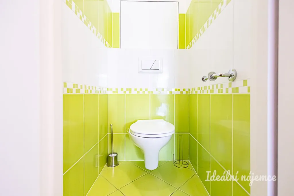 Koupelna je vybavena vanou, umyvadlem a zrcadlovou skříňkou. Toaleta je samostatná. V předsíni se nachází další velká šatní skříň a k bytu náleží také praktický sklep.
