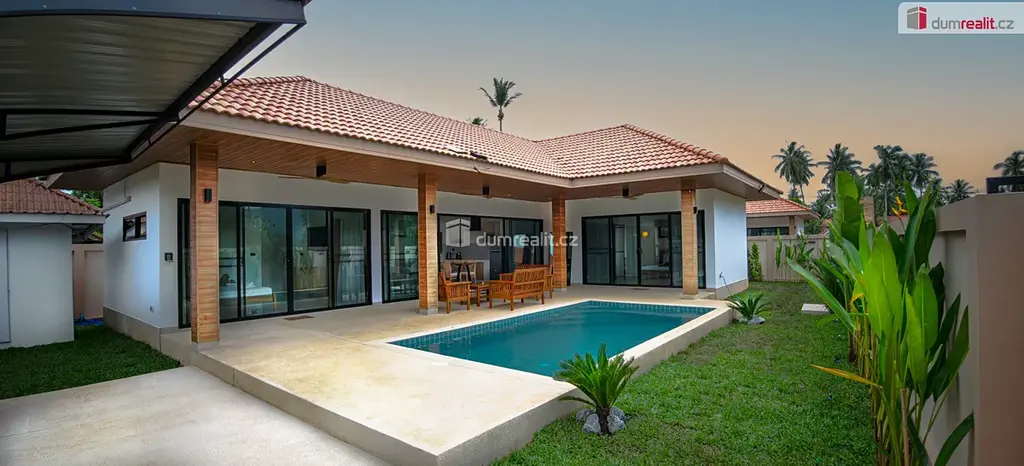 Prodej moderní a kvalitní vily jen 450 metrů od malebné pláže Lipa Noi. Jedná se o vily 4kk, mají každá tři koupelny, bazén 6x3m² a jsou zařízené.