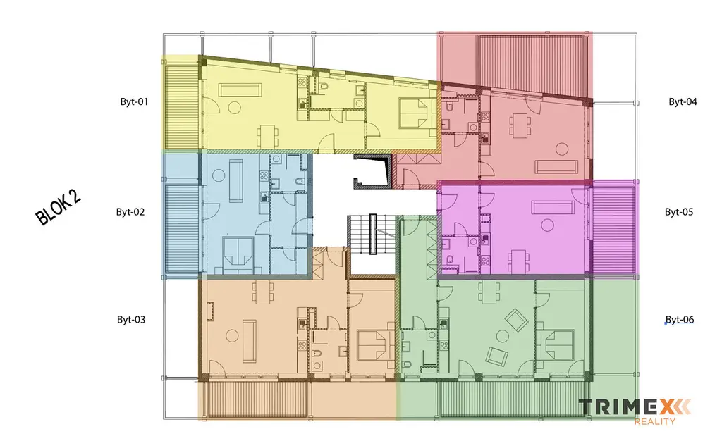 Celkem zde vznikne 56 bytových jednotek v různých dispozicích, 2 nebytové prostory a 70 parkovacích stání v podzemních garážích.