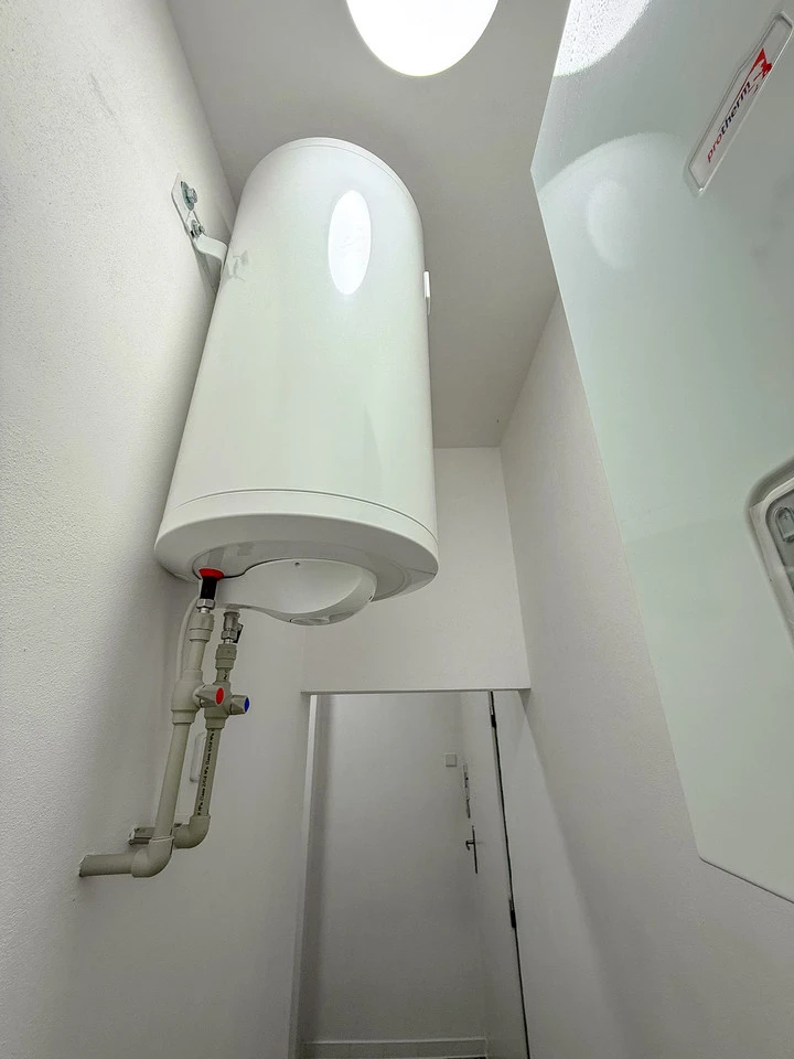 V bytě jsou nové rozvody vody, odpadů i vytápění. O komfort bydlení se stará vlastní elektrický kotel (výkon 9kW) a elektrický bojler, což umožňuje plnou kontrolu nad náklady na energie. K dispozici je také nová elektro-revize a optický kabel je přiveden až do bytu. Možnost zapojení plynu do bytu zde samozřejmě zůstává.