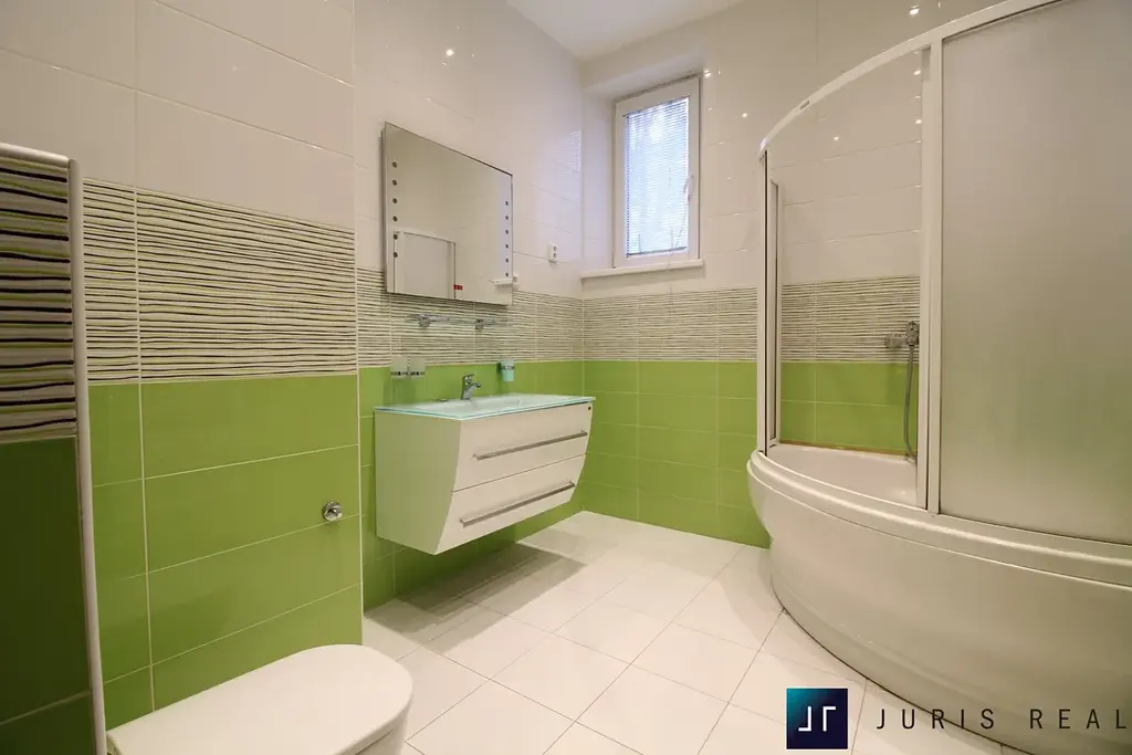 Koupelna je vybavena vanou se sprchovou zástěnou, topným žebříkem a WC. Druhé samostatné WC je přístupné z chodby.