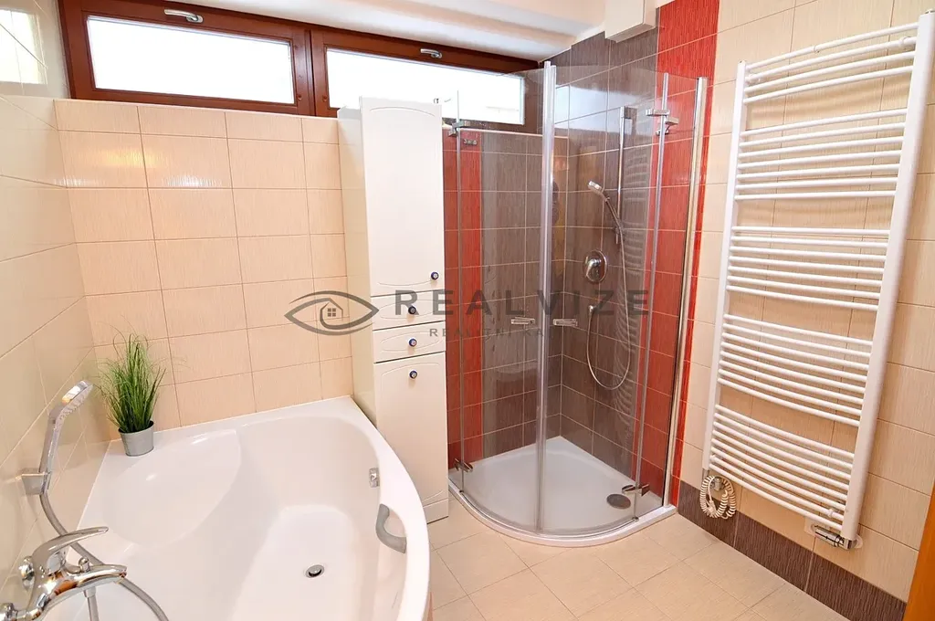 Kuchyňská linka se spotřebiči (vestavěná lednice, horkovzdušná a mikrovlnná trouba, indukční deska, myčka, digestoř). Veškeré podlahy jsou z dubového dřeva, podlahové vytápění, radiátory, bezpečnostní dveře. Bezproblémové parkování před domem. Nákupní zóna, lesopark a centrum města jsou v docházkové vzdálenosti. Nájemné je stanoveno na 25.000,-Kč /měsíc, zálohy na služby spojené s užíváním bytu jsou stanoveny na 6.500,-Kč, majitel požaduje kauci ve výši 60.000,-Kč, provize RK 30.250,-Kč. Volné ihned.