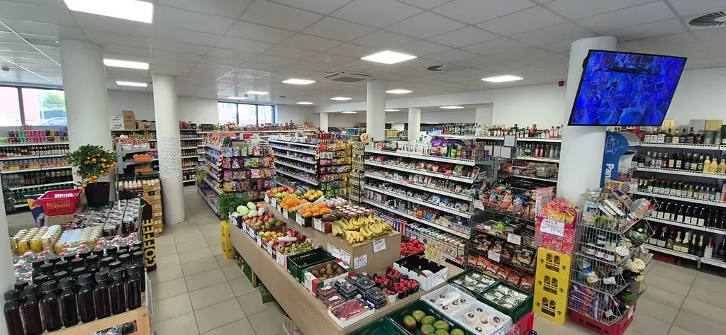 Sklep se nachází ve druhém podzemním podlaží stejně jako společné prostory určené pro uložení kol, kočárků a pod..