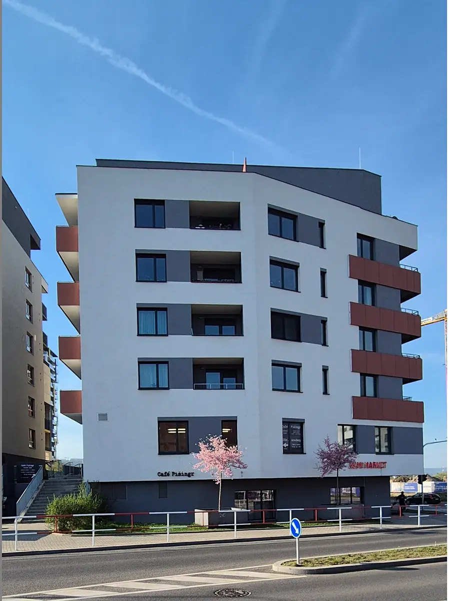 Jednotka je situována ve druhém patře novostavby do ul. K Vystrkovu s výhledem - tedy okny i lodžií na jihozápad.