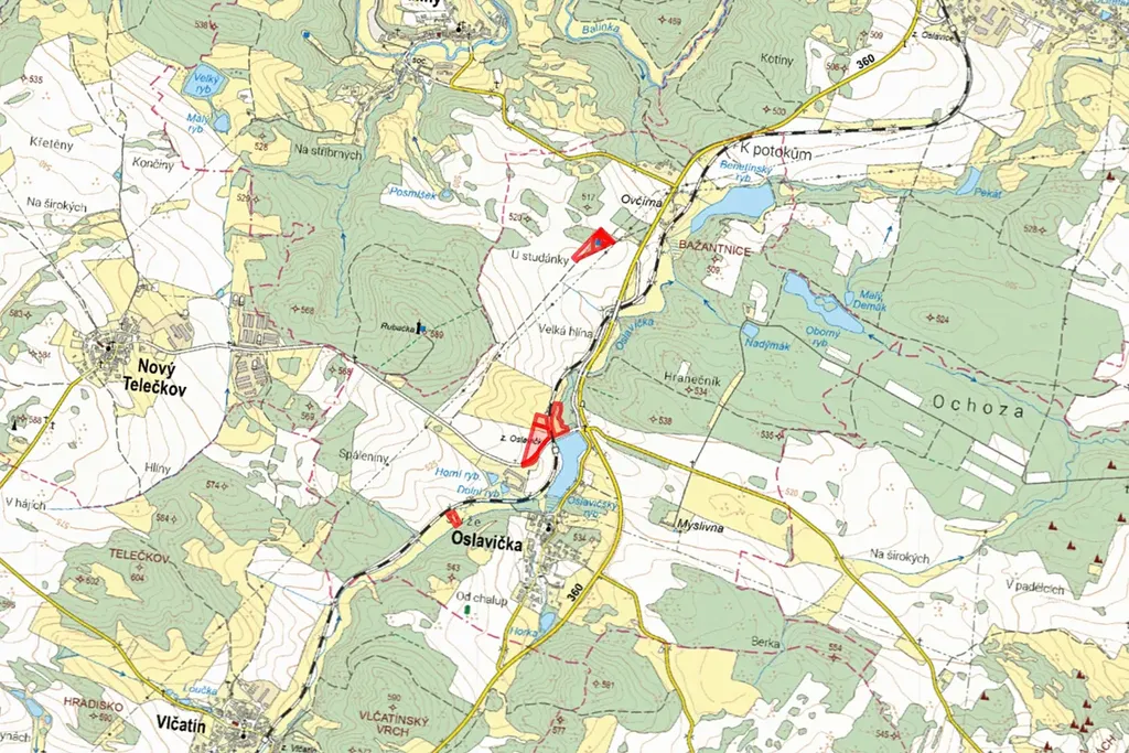 Jedná se o pozemky v okrese Žďár nad Sázavou, obec Oslavička.