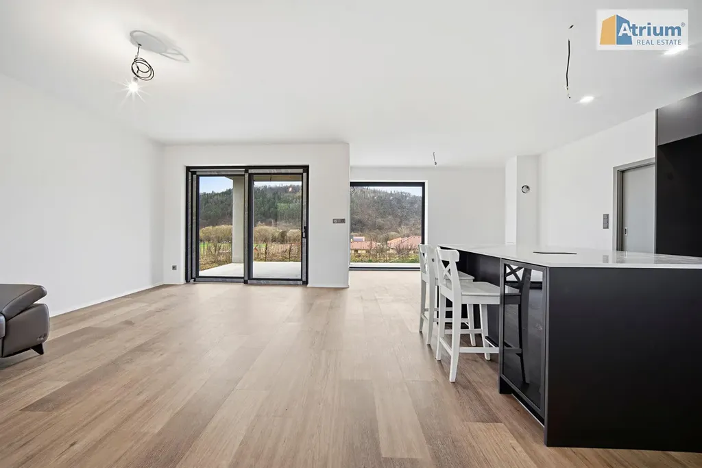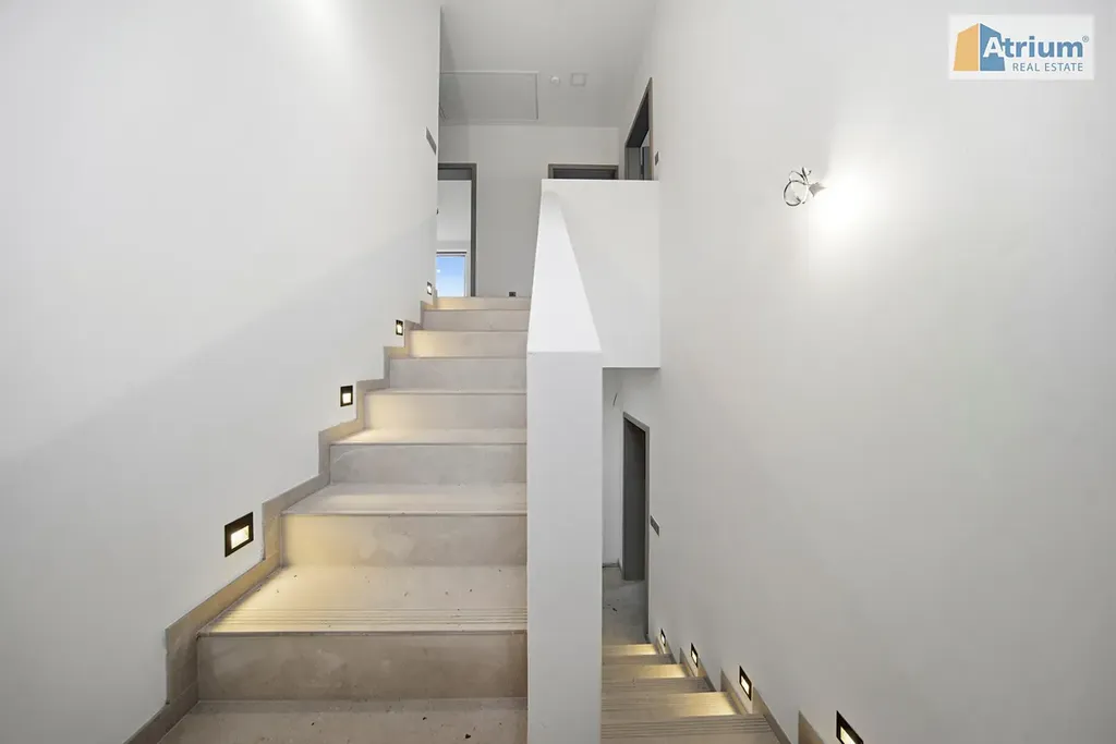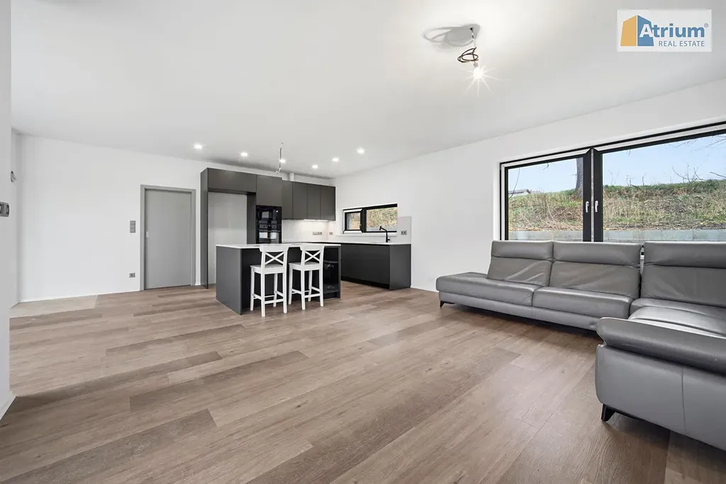 Luxusní dům, který byl postaven v roce 2025, nabízí celkovou užitnou plochu 194 m², zahrnující v přízemí prostorný obývací pokoj spojený s kuchyní /zn. SYKORA, deska je z tvrzeného kamene Technistone/, dále zde naleznete rodičovské apartmá /ložnice+šatna+koupelna s WC/, dále úložné prostory a technicklé zázemí domu. V prvním patře jsou umístěny 2 ložnice s dostatkem prostoru pro děti, pracovna, společná šatna a samozřejmě koupelna s WC. Dvě patra domu poskytují dostatek soukromí pro každého člena rodiny. Obrovskou výhodou tohoto RD je krásná terasa s výhledem do okolí, kde budete mít možnost trávit pohodové chvilky s rodinou či přáteli třeba u grilpovačky. Nesmíme ale zapomenout ještě na velkoryse navrženou garáž, která pojme pohodlně 2 auta a ještě zbyde dostatek místa pro uskladnění věcí či prostor pro kutila.