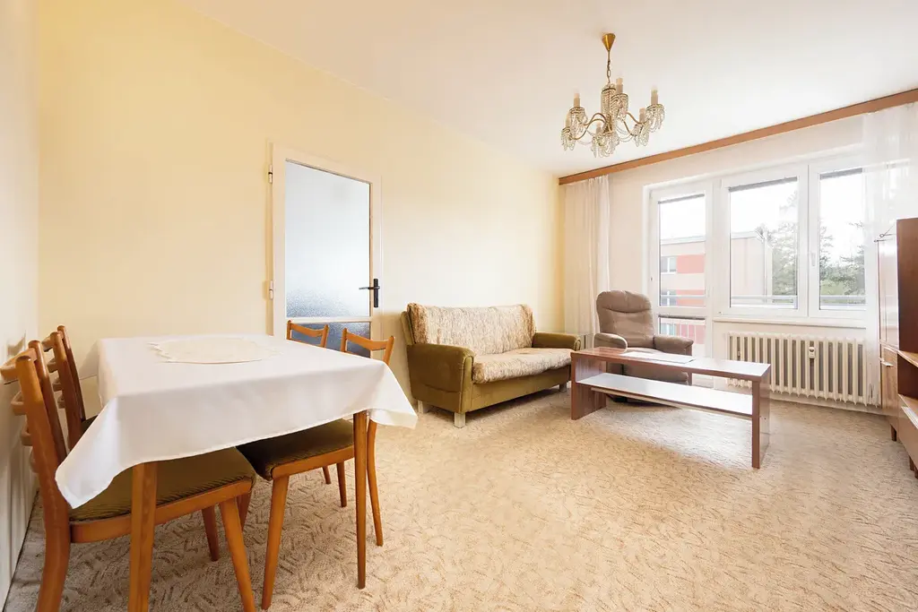 Byt nabízí příjemně propojený obytný prostor, který působí vzdušně a přirozeně navazuje jednotlivé místnosti. Dispozice tak vytváří pohodové rodinné bydlení s dostatkem prostoru i možností úprav dle vlastních představ.