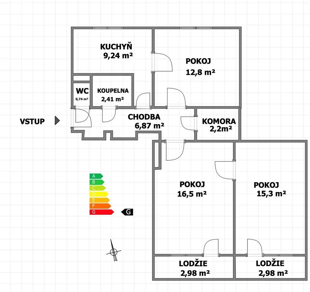 samostatné WC 0,74 m²