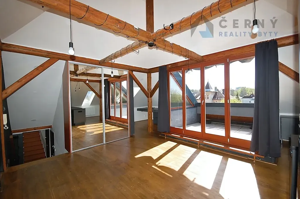 Byt je po kompletní, vkusné a nápaditě řešené rekonstrukci. Působí vzdušným a prostorným dojmem a nabízí komfort moderního vybavení včetně spotřebičů. Prosklená stěna s výstupem na terasu vpouští do prostoru spoustu denního světla a pohled z terasy je prostě nádherný. Atraktivní ráz bytu dotváří původní dřevěné stropní a podpěrné trámy, které byly zachovány a renovovány při rekonstrukci.