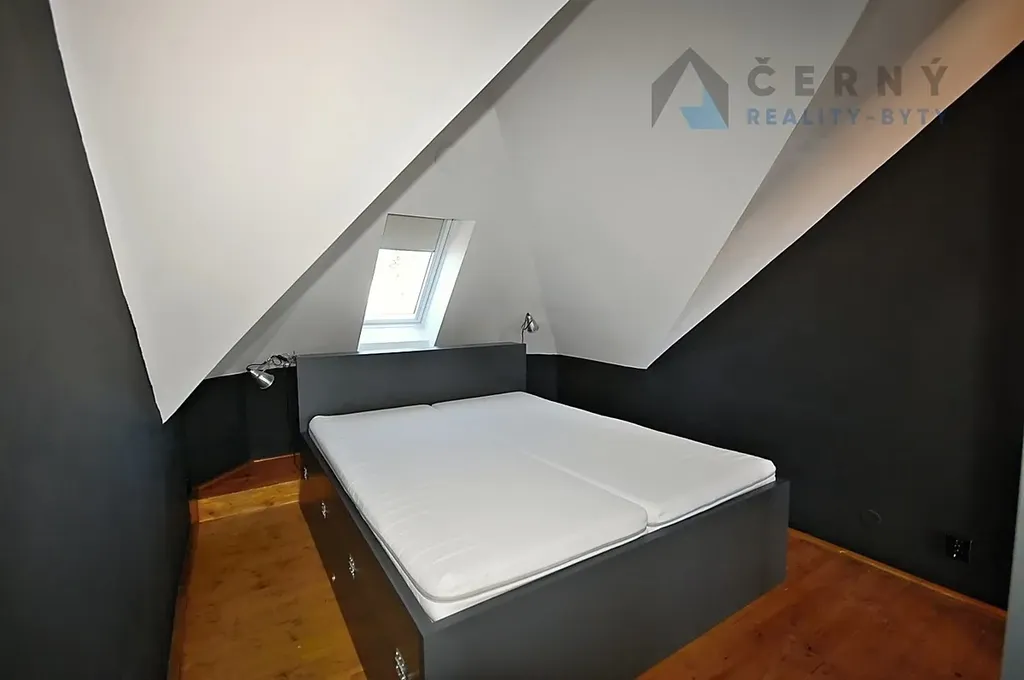 Krásný, velmi prostorný byt o výměře 70 m2 je umístěn ve 3. patře - podkroví zrekonstruované vily se zahradou, kterou lze společně s ostatními nájemníky využívat.