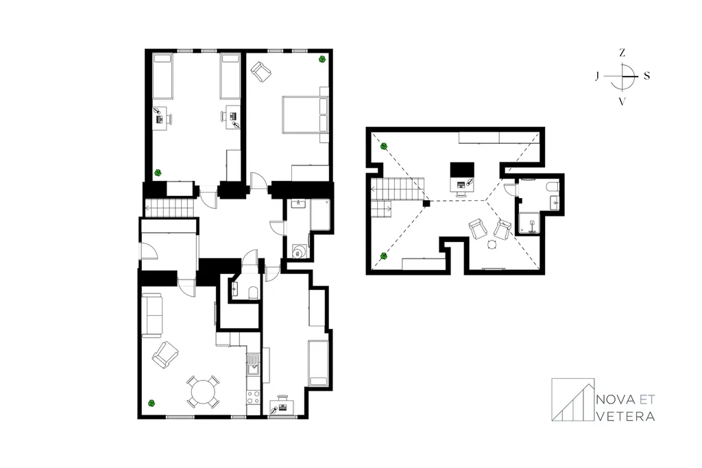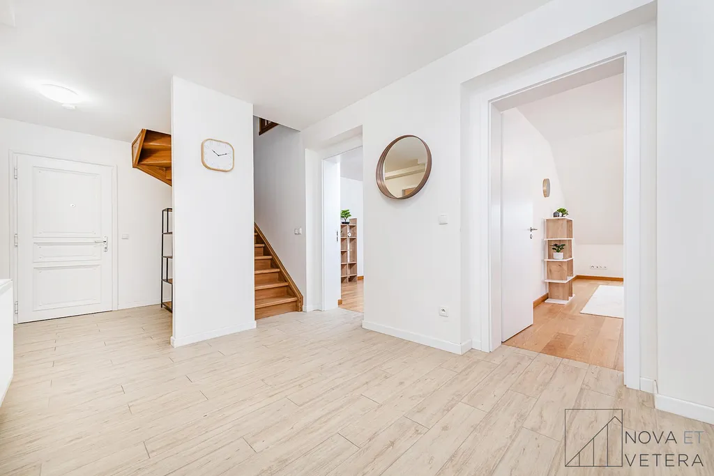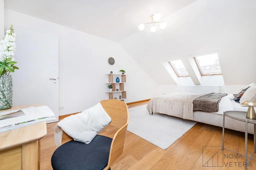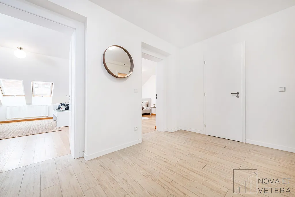 Na stejném podlaží se nachází ještě jeden podkrovní mezonet s dispozicí 4+kk ve stejném standardu.
