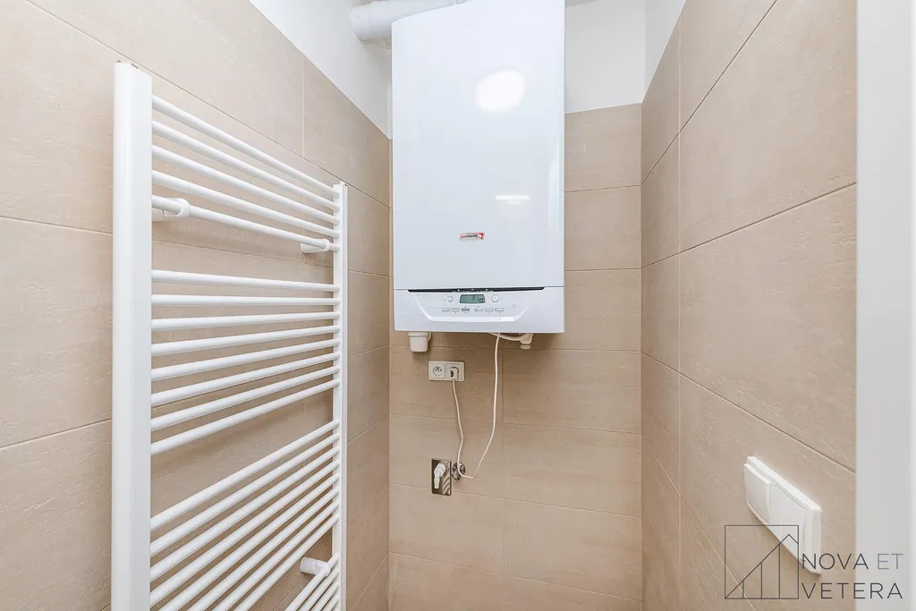 Byt je orientován na východ i západ, což zajišťuje dostatek denního světla po celý den. Vytápění a ohřev vody zajišťuje plynový kotel.