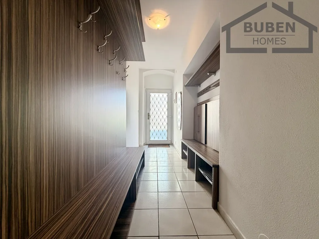 Součástí domu jsou dvě garáže s vraty na dálkové ovládání (jedna je průchozí do domu).