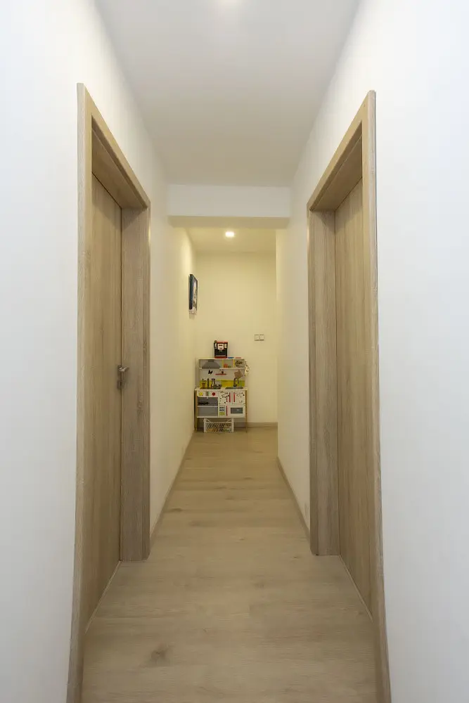 ✔️ praktickou vstupní chodbu a halu s vestavěnými skříněmi