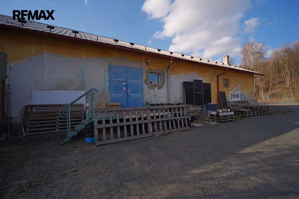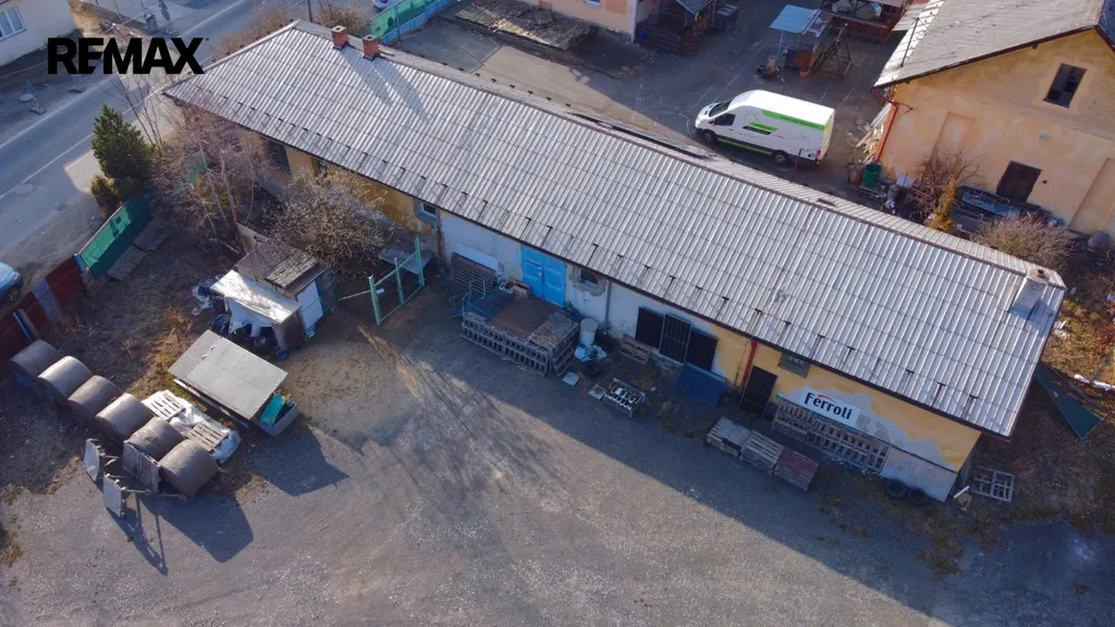 Areál o rozloze 5500m2 má dvě skladové haly (600+180) m2 , dále 4 garáže (4 x 50)m2 a administrativní kancelář s bytovou jednotkou 3+1 a 2+1 a podkrovní místnosti.
