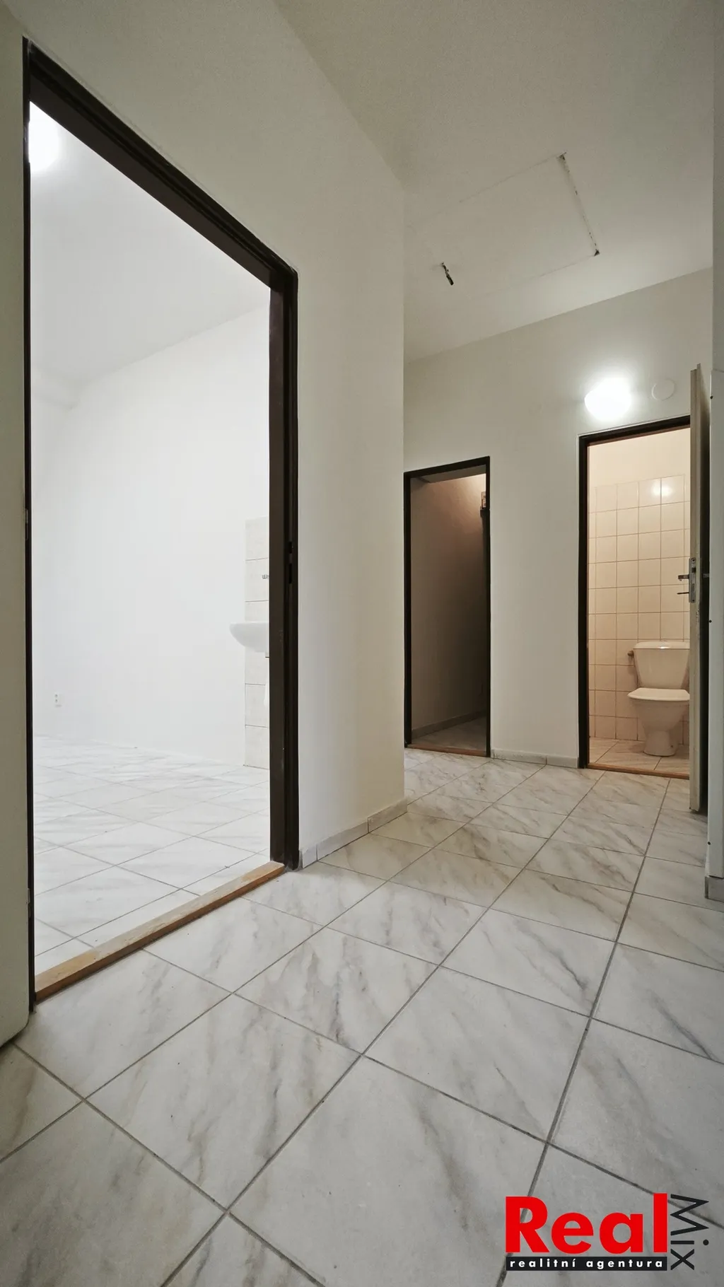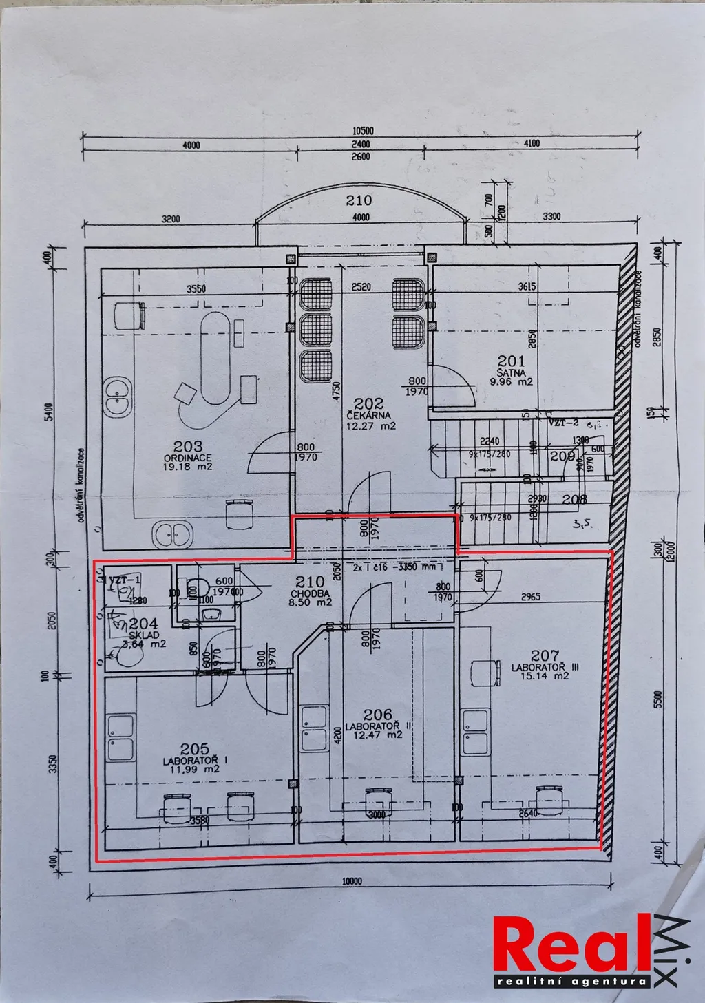 Dispozice: sdílená čekárna/předsálí 12m2, kanceláře/místnosti 15 + 13 + 12m2, sklad 3,6m2, sklad 3,2m2, předsíň/vstupní hala 8,5m2, WC s umyvadlem 1,2m2, možnost využití sdílené šatny. V každé místnosti je umyvadlo s teplou a studenou vodou.