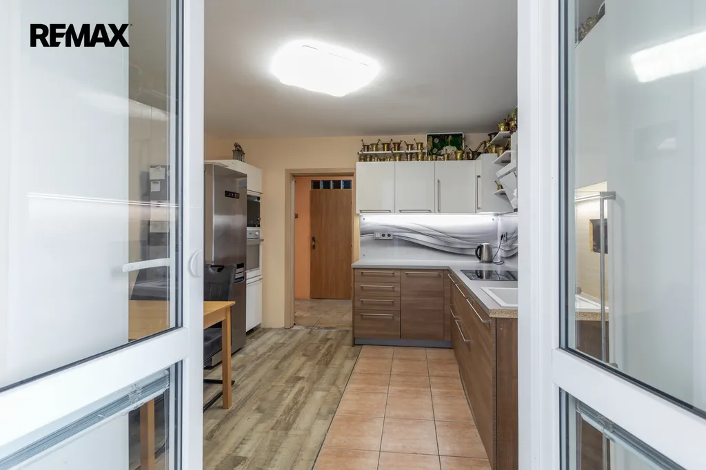 ✅ Kuchyšká linka ve tvaru L zhotovená na míru, / stáří 6 let/ vestavná elektrická multifunkční trouba, vestavná sklokeramická varná deska, komínová digestoř s recirkulací. Místo pro myčku / momentálně vyjmuta pro nefunkčnost/