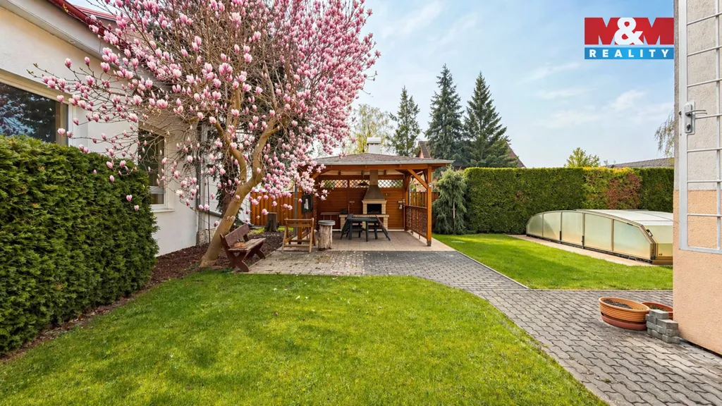 Velkou předností je možnost využití soukromé zahrady o výměře 350 m², kde se nachází bazén (3,5 × 7,5 m), pergola pro příjemné posezení a garáž o velikosti 24,5 m².