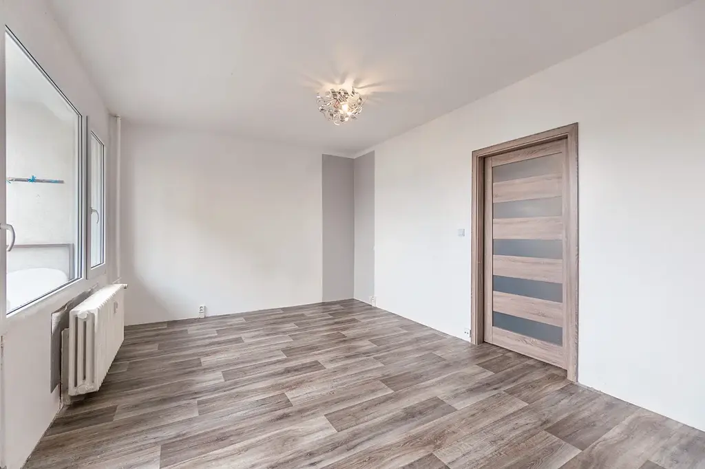 Na kuchyň navazuje prostorný obývací pokoj s lodžií. Oba další pokoje mají samostatné vchody, nejsou průchozí. Ve větším z nich jsou 2 okna.