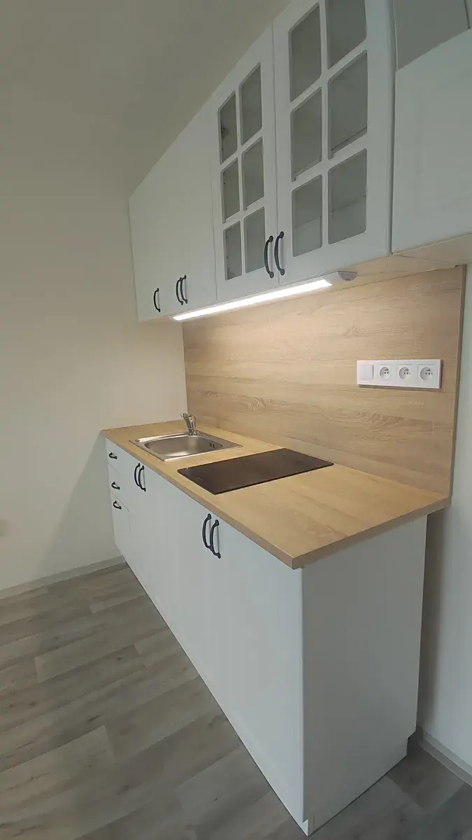 Byt je nyní po dokončené rekonstrukci - nové jádro se sprchovým koutem, nová kuchyňská linka, podlahy ad.