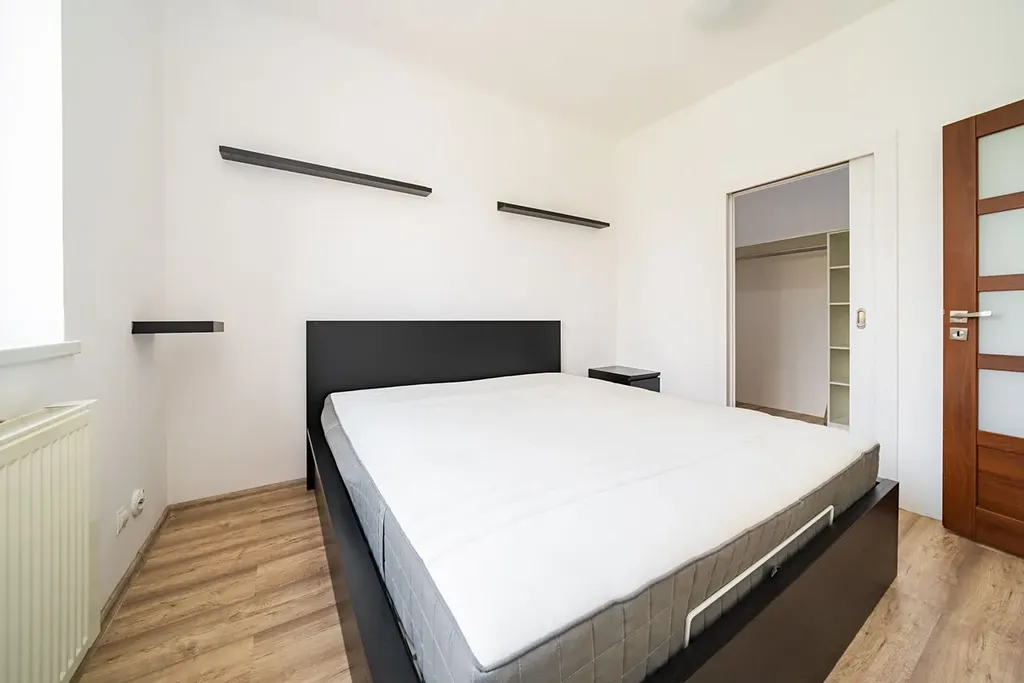 Interiér bytu dispozičně nabízí vstupní předsíň, obývací prostor propojený s kuchyňskou částí, dále ložnici s prostornou šatnou, koupelnu s vanou a samostatnou toaletu.
