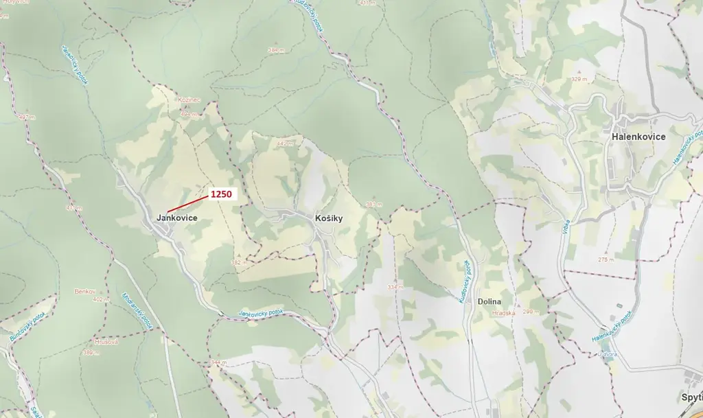 Ostatní plocha o výměře 563 m2, parcelní číslo 1250, podíl 1/1, katastrální území Jankovice u Uherského Hradiště, obec Jankovice, obec s rozšířenou působností Uherské Hradiště, okres Uherské Hradiště, Zlínský kraj.