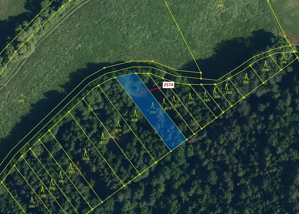 Lesní pozemek o výměře 782 m2, parcelní číslo 2574, podíl 1/1, katastrální území Chotěbudice, obec Chotěbudice, obec s rozšířenou působností Moravské Budějovice, okres Třebíč, Kraj Vysočina.