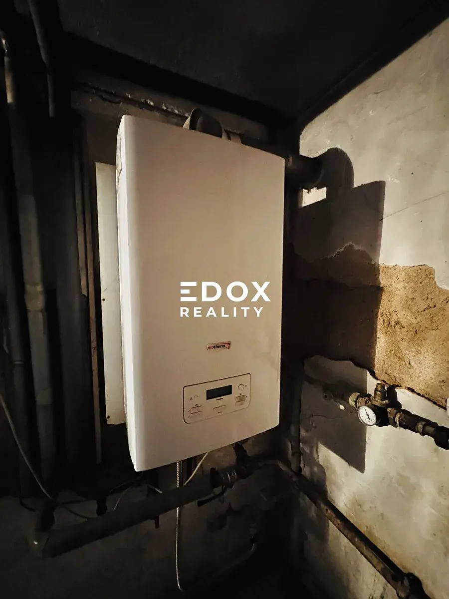 Vytápění domu je zajištěno pomocí plynového kotle, kotle na pevná paliva a v druhém podlaží domu lze také přitápět a vytvořit si tak příjemnou atmosféru pomocí krbu.
