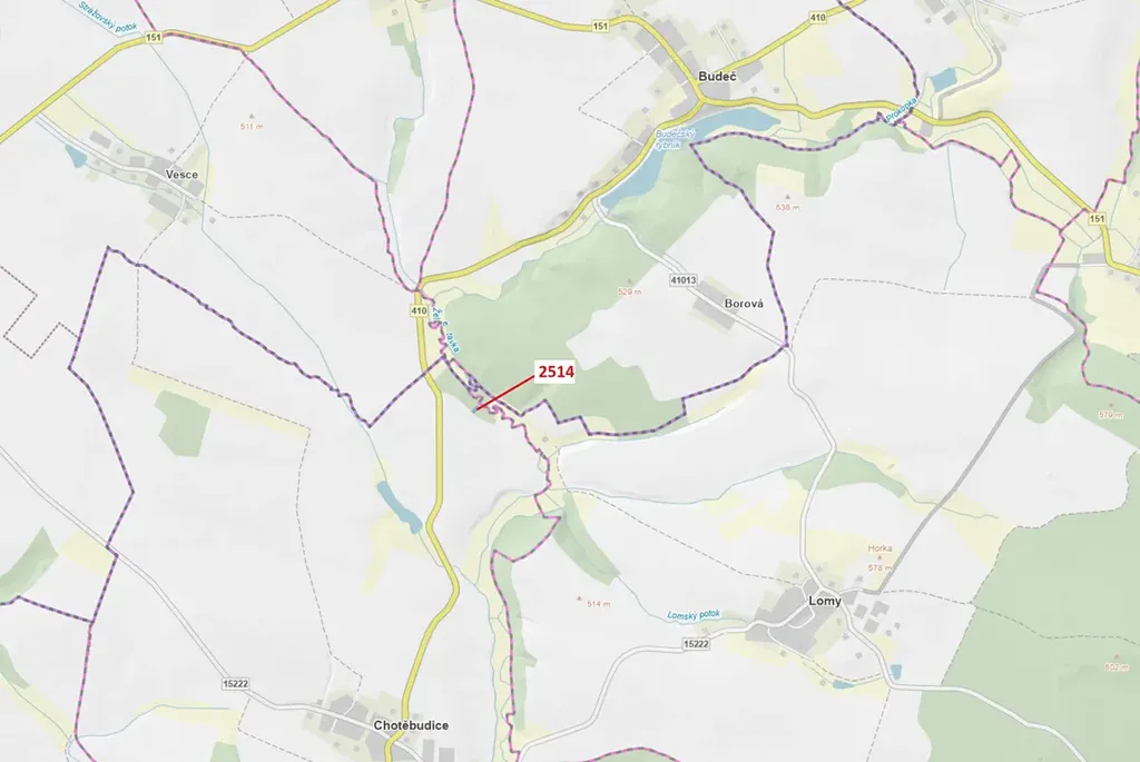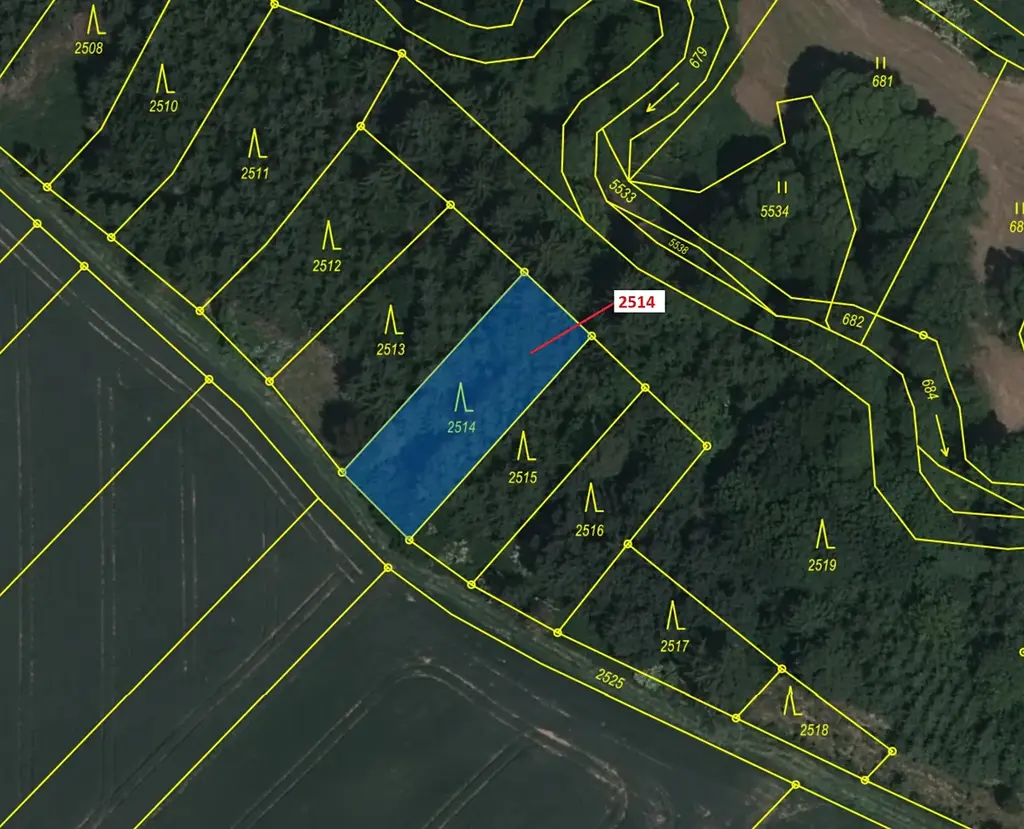 Lesní pozemek o výměře 532 m2, parcelní číslo 2514, podíl 1/1, katastrální území Chotěbudice, obec Chotěbudice, obec s rozšířenou působností Moravské Budějovice, okres Třebíč, Kraj Vysočina.